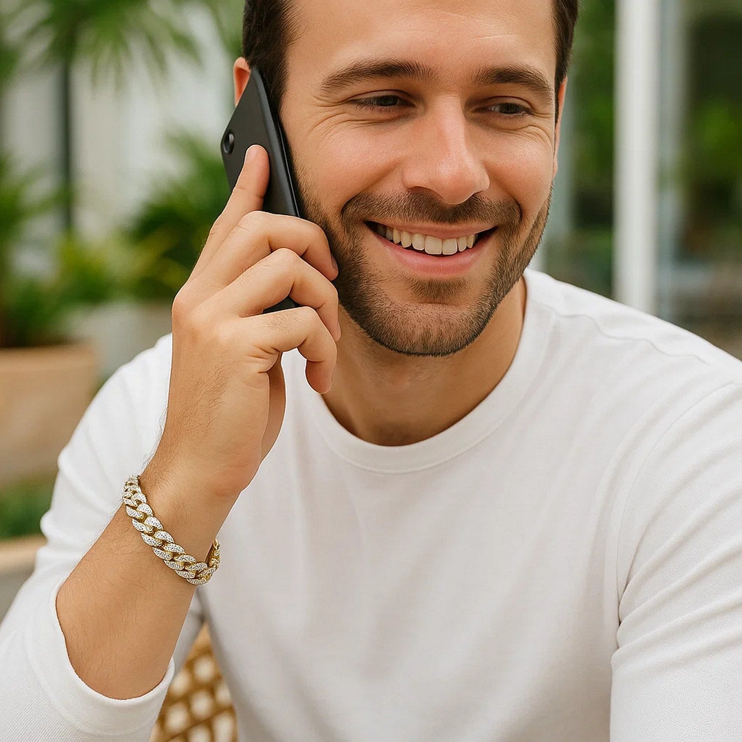 14k Two Tone Gold Curb Chain Bracelet with Diamond Pave Links