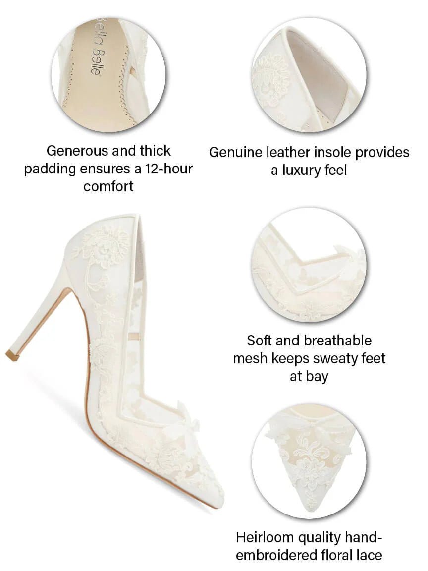 Bella Belle Sophia Ivory Lace Bridal Pumps – 4-Inch Heels