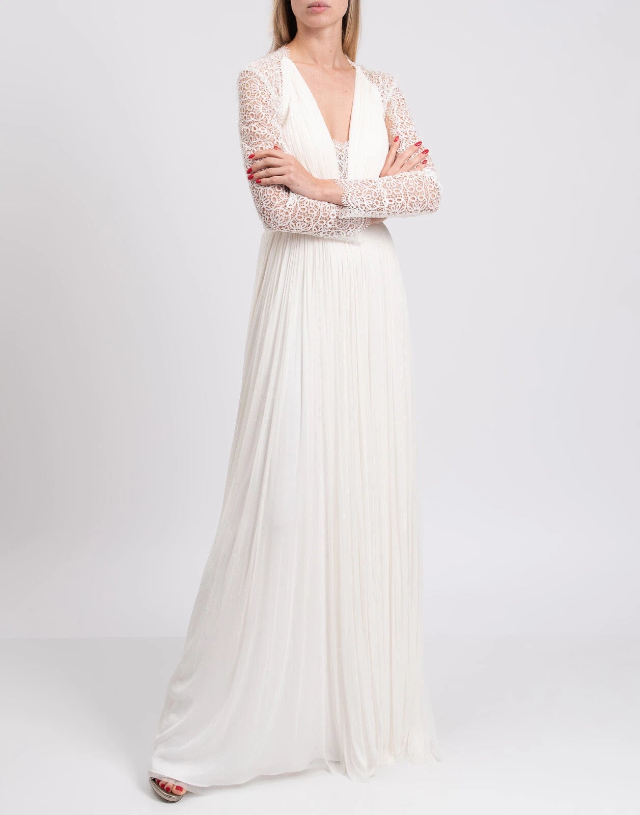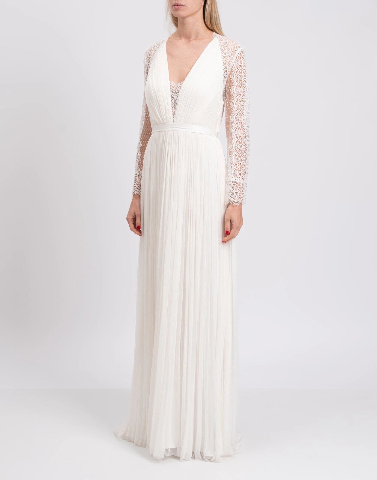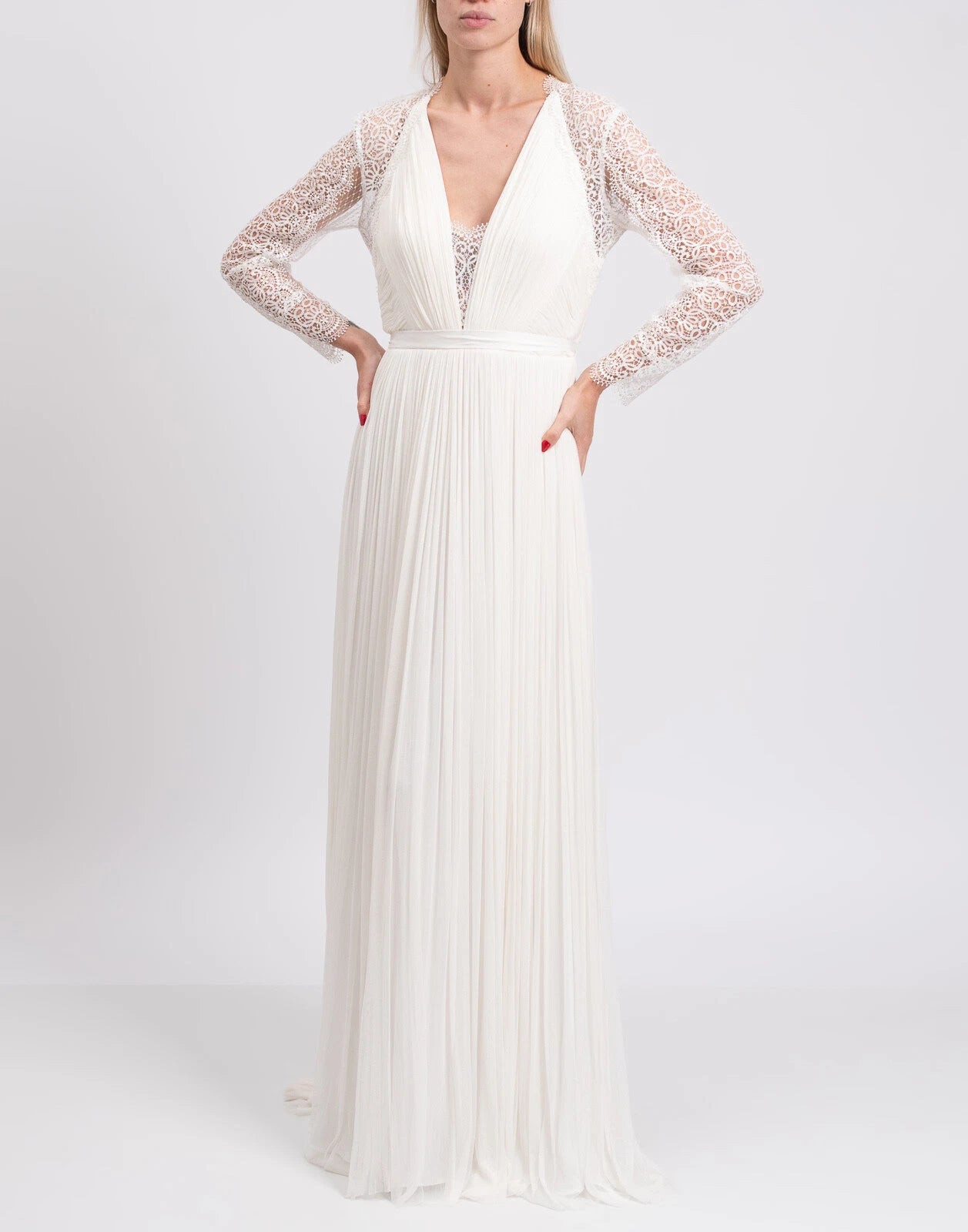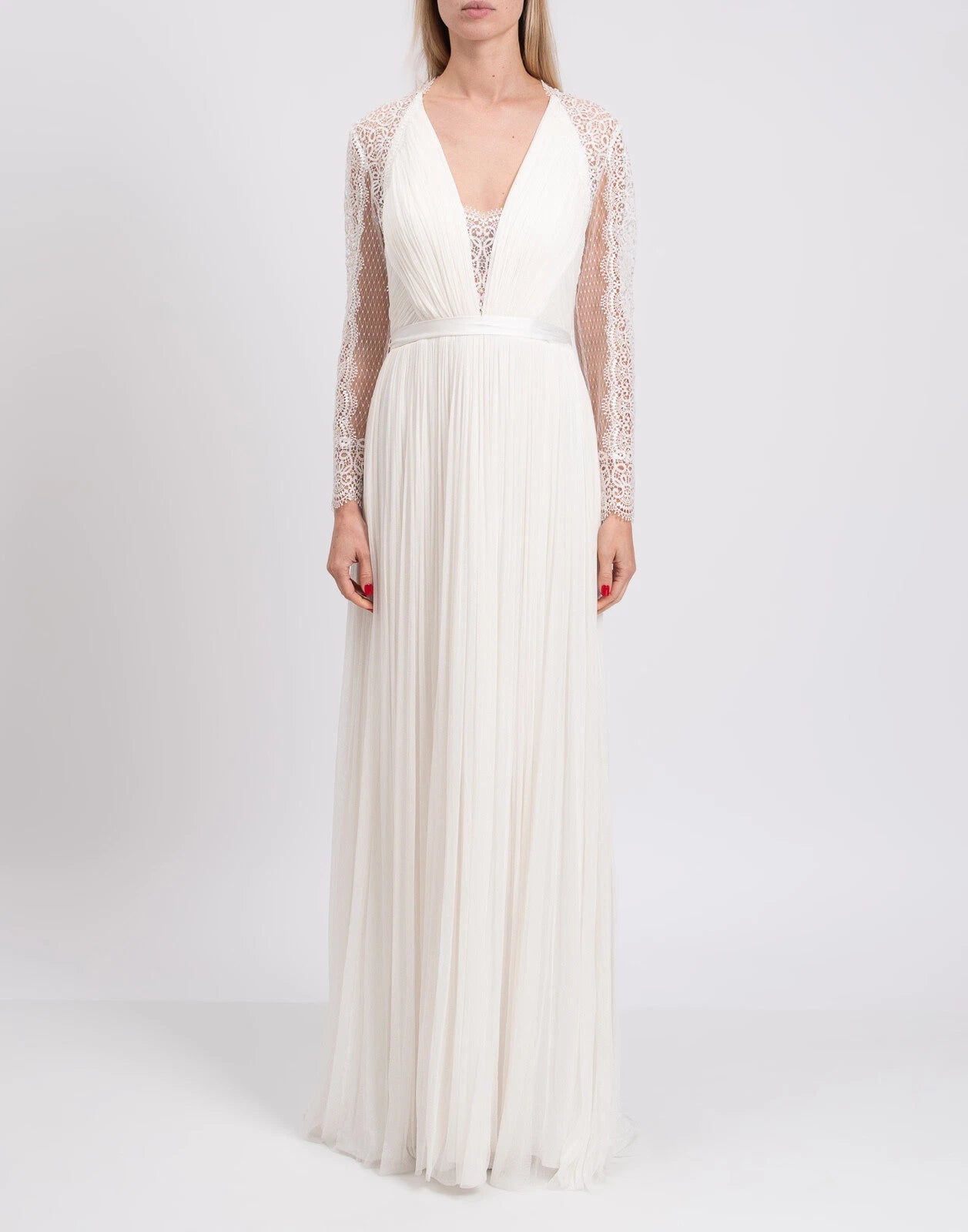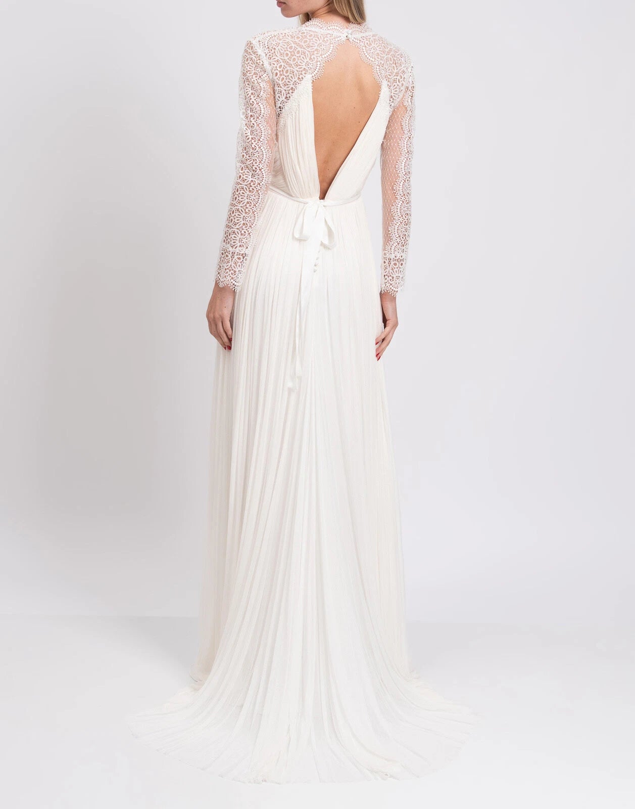 Catherine Deane Pleated Lace-Back Wedding Dress