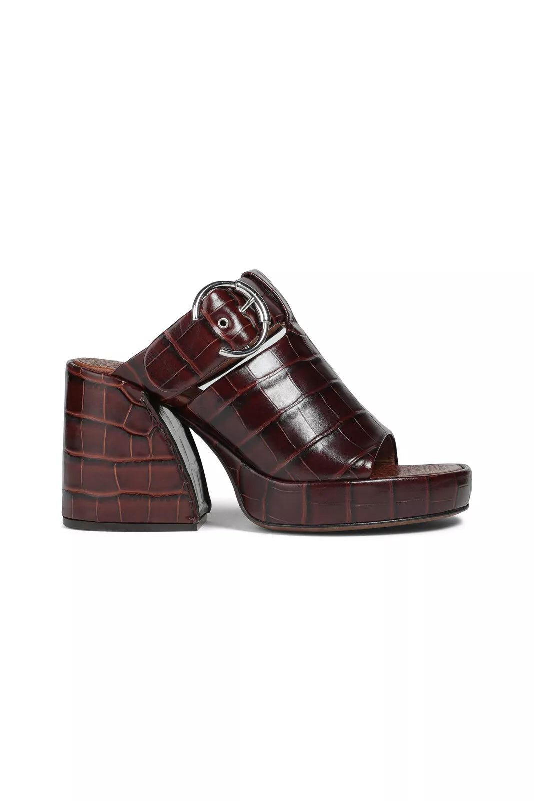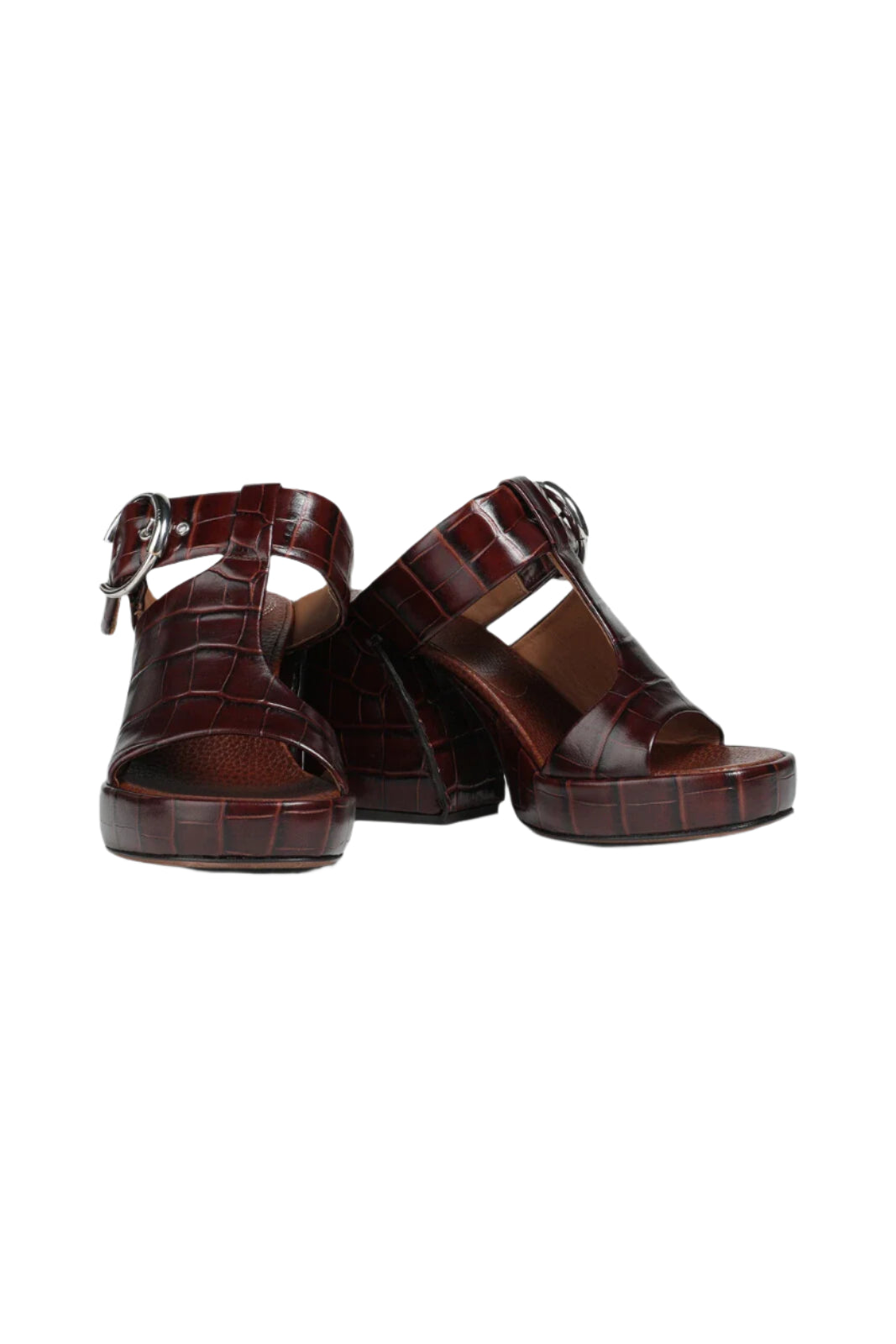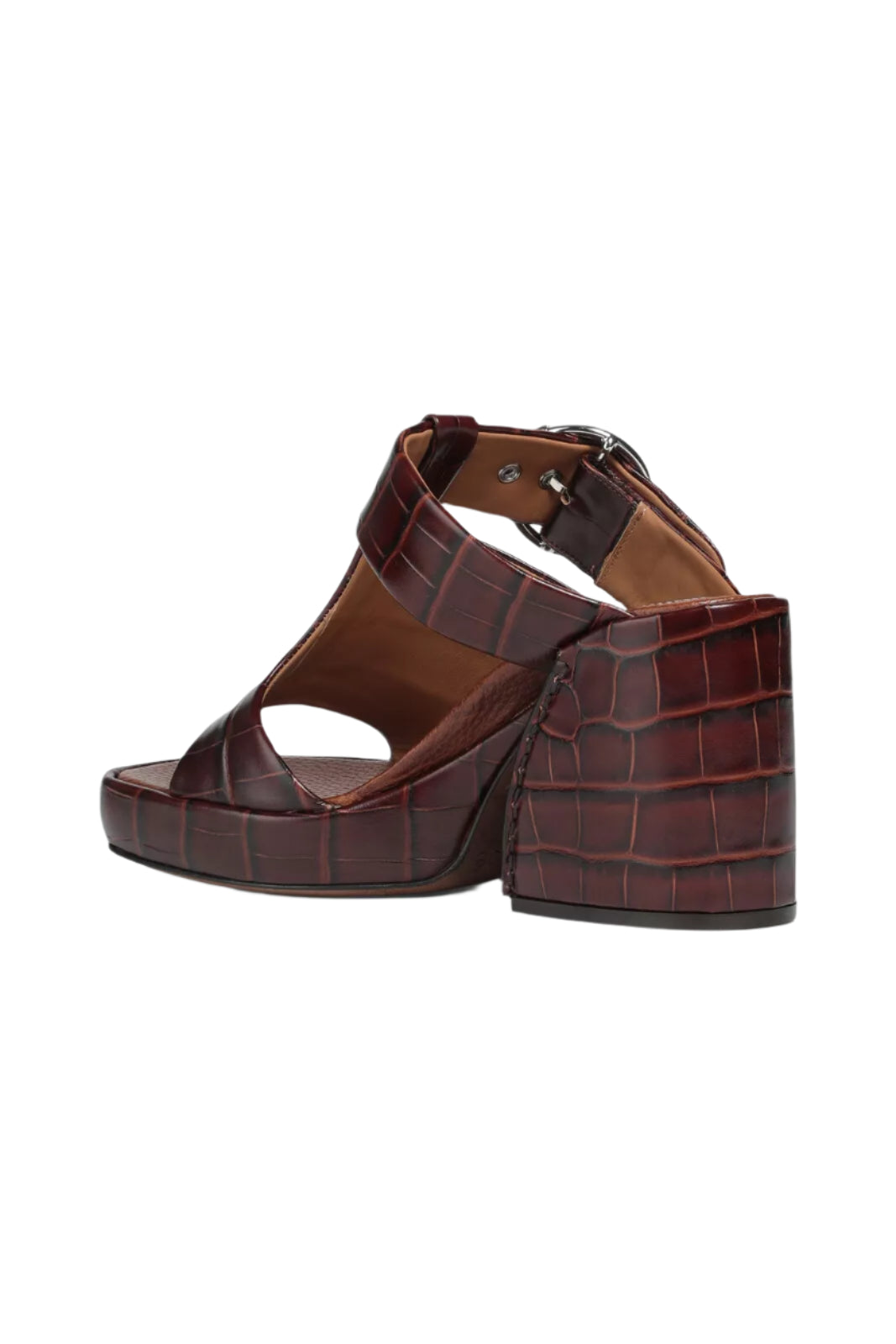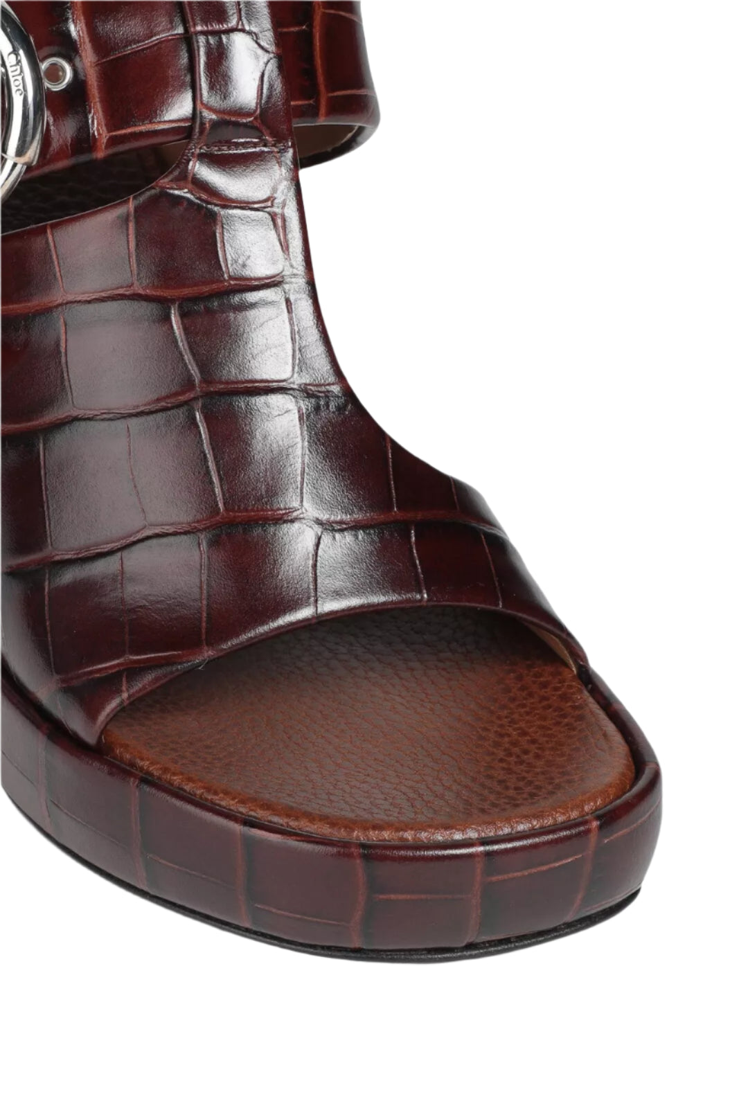 These stylish Chloe sandals feature croc-embossed leather, detailed with cutouts and finished with silvertone buckles.