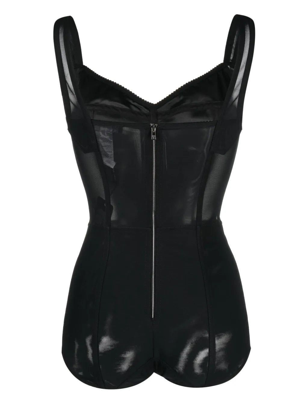 Dolce & Gabbana floral-lace corset bodysuit. If you appreciate lace, this bodysuit from Dolce & Gabbana is an ideal choice. It includes a sweetheart neckline, a tailored fit, and a zip closure at the back. Please note that underwear and lingerie should be tried on over your own clothing.