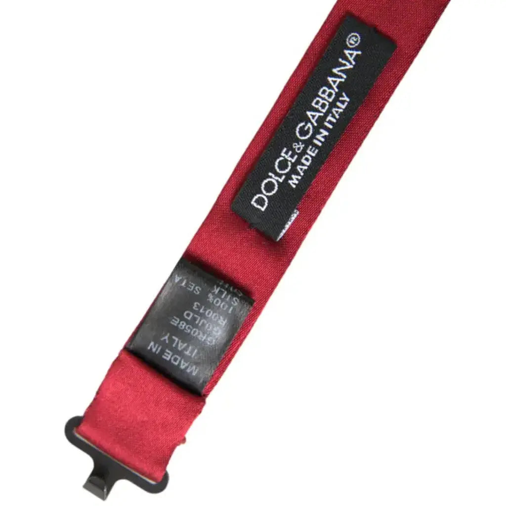 Elevate your formalwear with this striking red silk bow tie from Dolce & Gabbana. Crafted in Italy, this pre-tied design features an elegant tonal floral jacquard pattern that adds depth and texture without overpowering your look. Finished with an adjustable neck strap and discreet hook closure for ease and comfort, it’s the perfect statement accessory for black-tie events, weddings, or refined evening style.