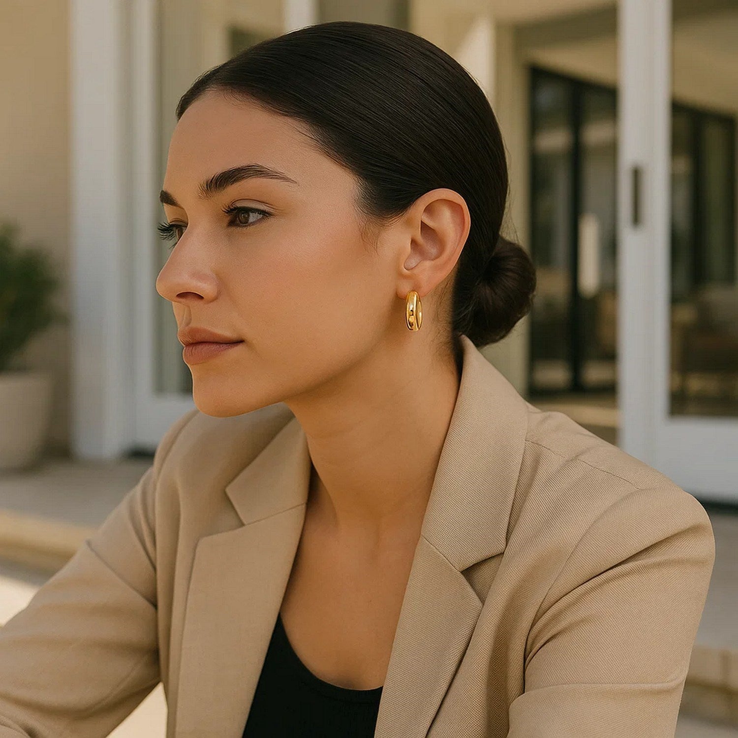 These 25mm Wedding Band hoop earrings are the perfect elegant & stylish design. These will definitely add a bit of uniqueness to your collection. Crafted in 14k yellow gold with a high polish finish & a snap closure.