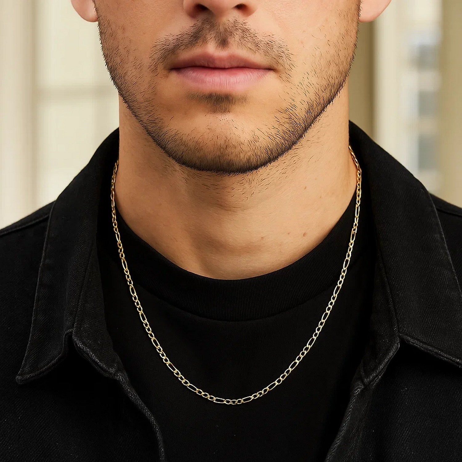 2.8mm 14k Yellow Gold Solid Figaro Chain