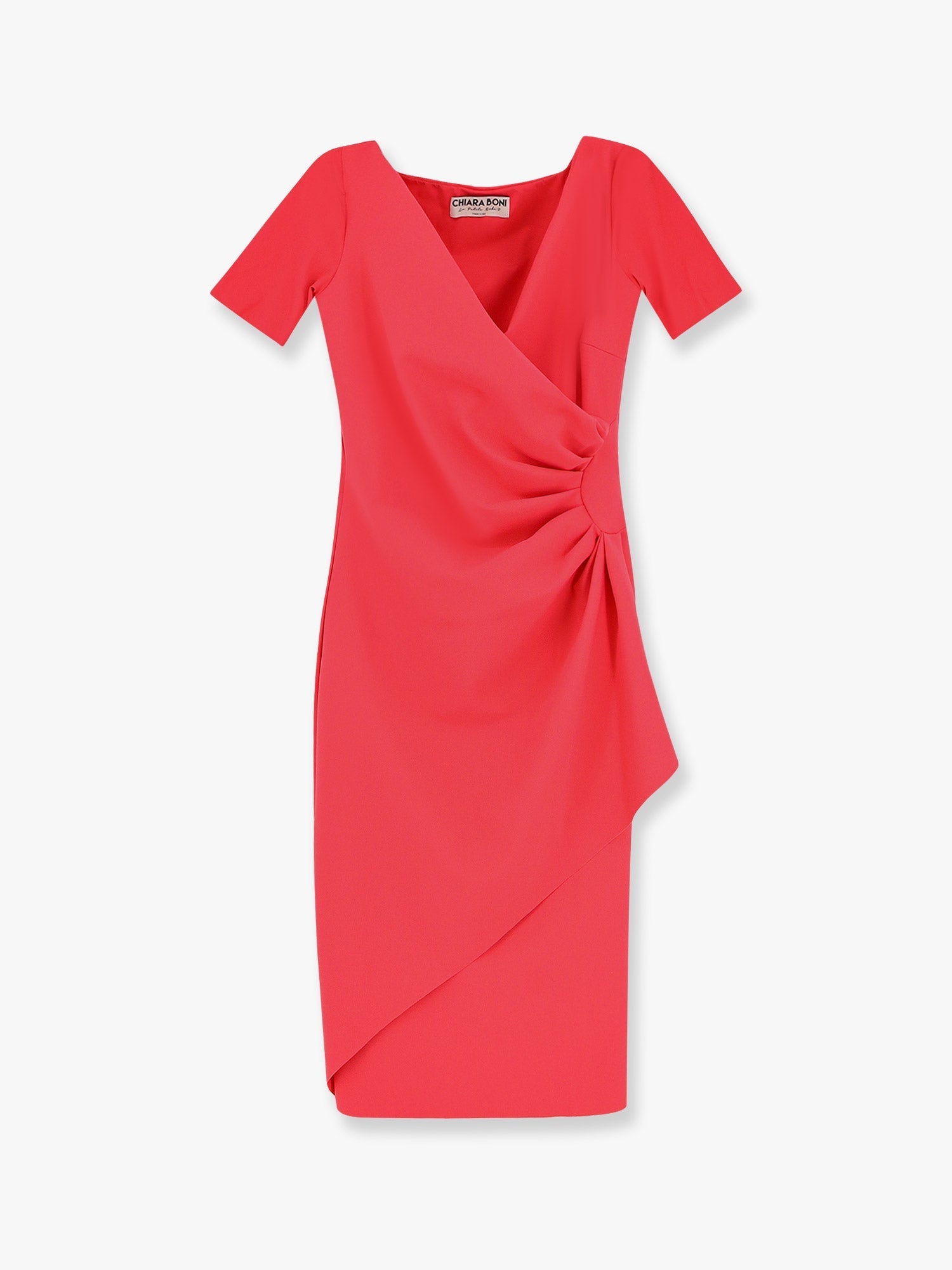 SKU: ABCCHARISSE_66848 - V-neckline short sleeve lateral maxi drapery made in italy 75% polyamide 25% elastane