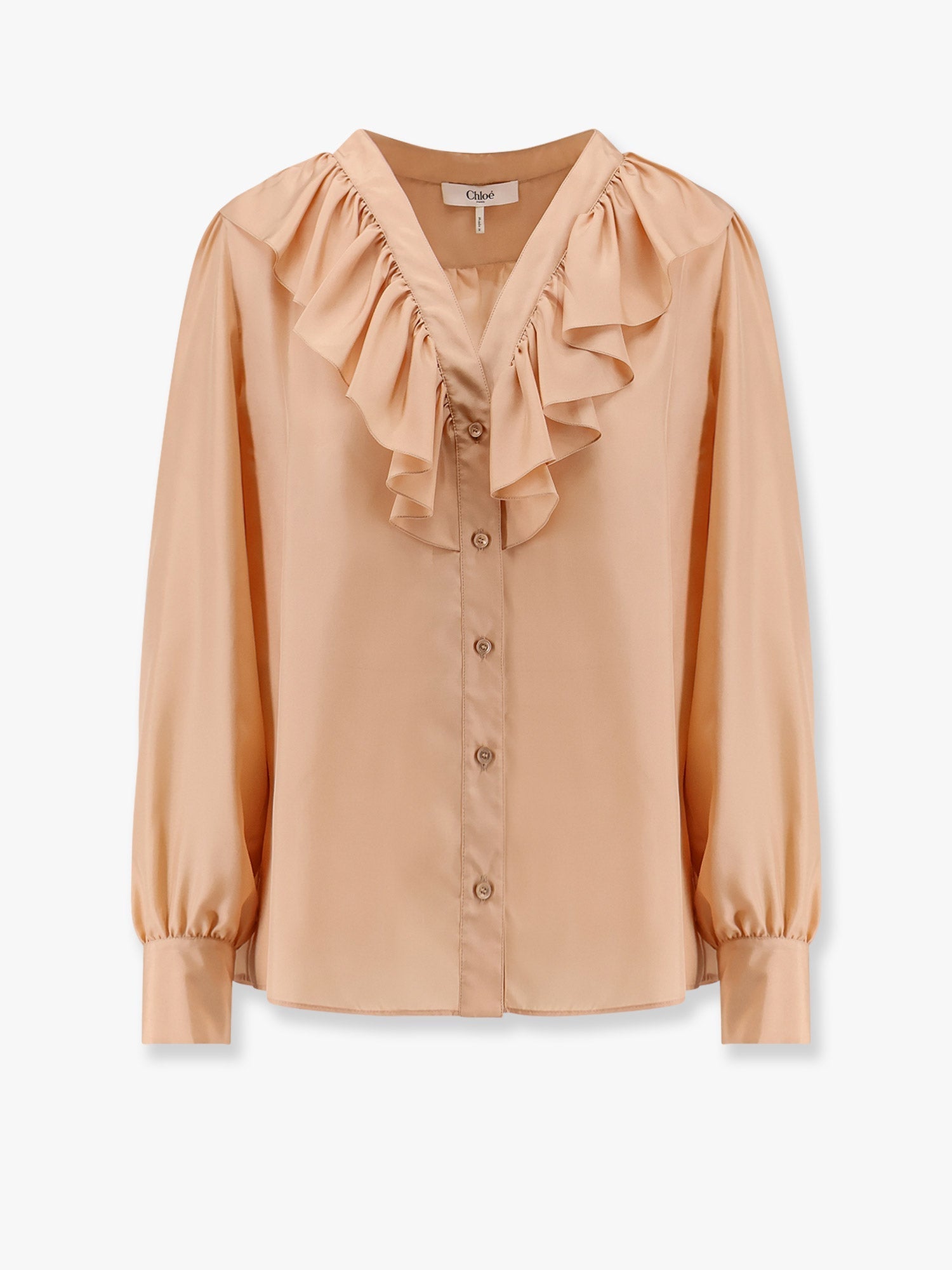 SKU: 25UHT67489_6H7 - Closure with ton-sur-ton buttons v-neckline profile with rouches long sleeves with cuff and button 100% silk