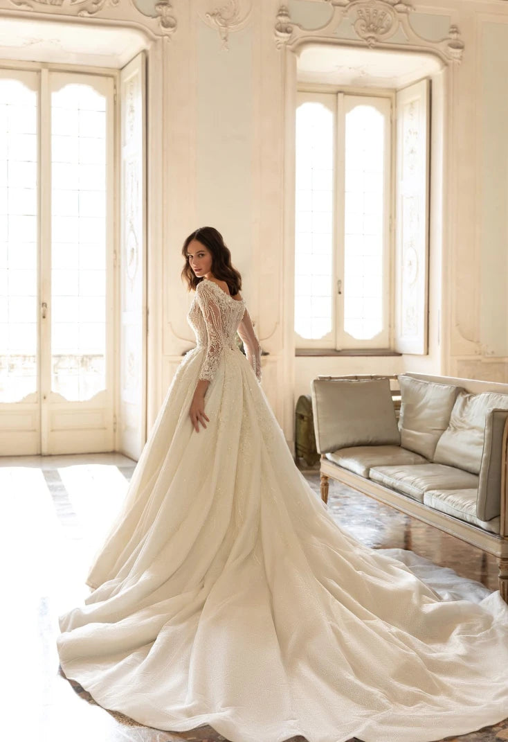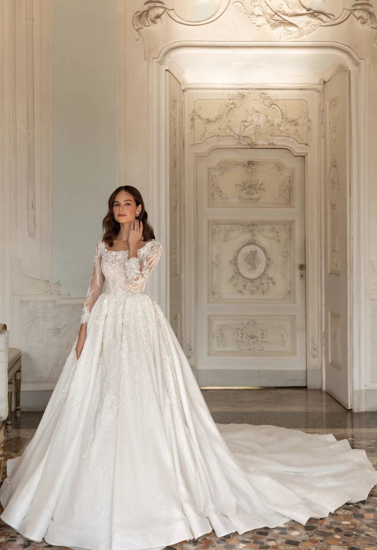 Crosetta - Long-Sleeve Lace & Beaded Ball Wedding Gown