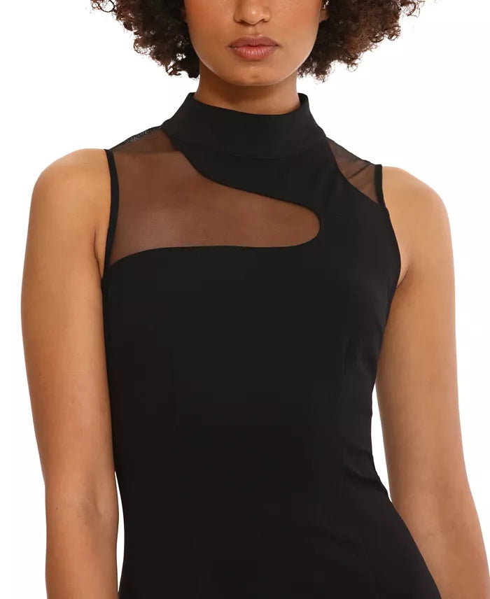Update your collection with this women's sleeveless scuba crepe dress by Donna Morgan, designed with a stylish mock neck for a modern look. The dress features a maxi length, stretchy and supportive scuba crepe fabric, and a center-back zipper closure. It has a mesh yoke detail, a front right slit, and comes unlined for comfort.