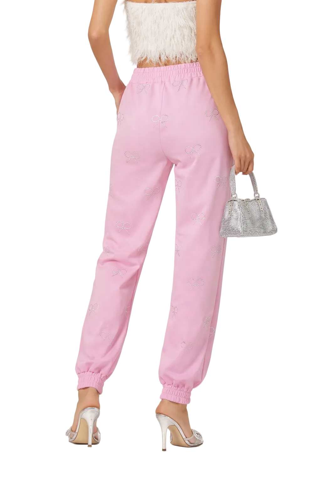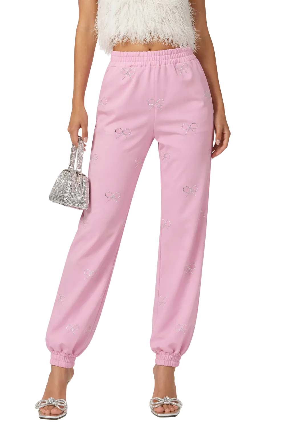 Mach & Mach Crystal Bow Sweatpants, crafted in a soft, lightweight cotton blend fleece. Designed for relaxed weekends yet elevated with all over crystal bow embellishment, this pair brings the brand’s iconic glamour into an easy everyday silhouette. The elasticated waistband and ankle cuffs create a flattering relaxed fit, while the slightly stretchy fabric ensures all day comfort without compromising style.