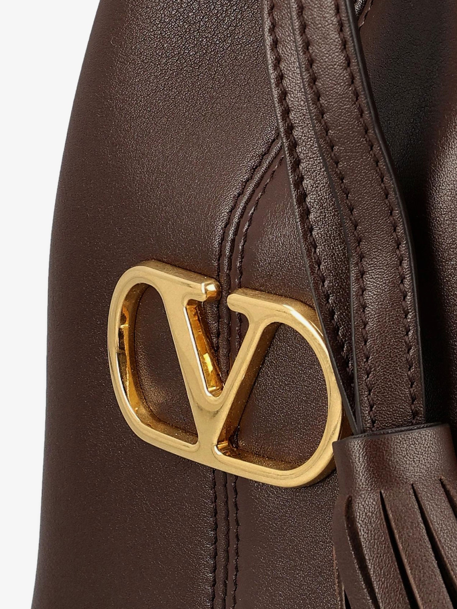 Valentino Garavani Leather Bucket Bag With Metal Vlogo Signature