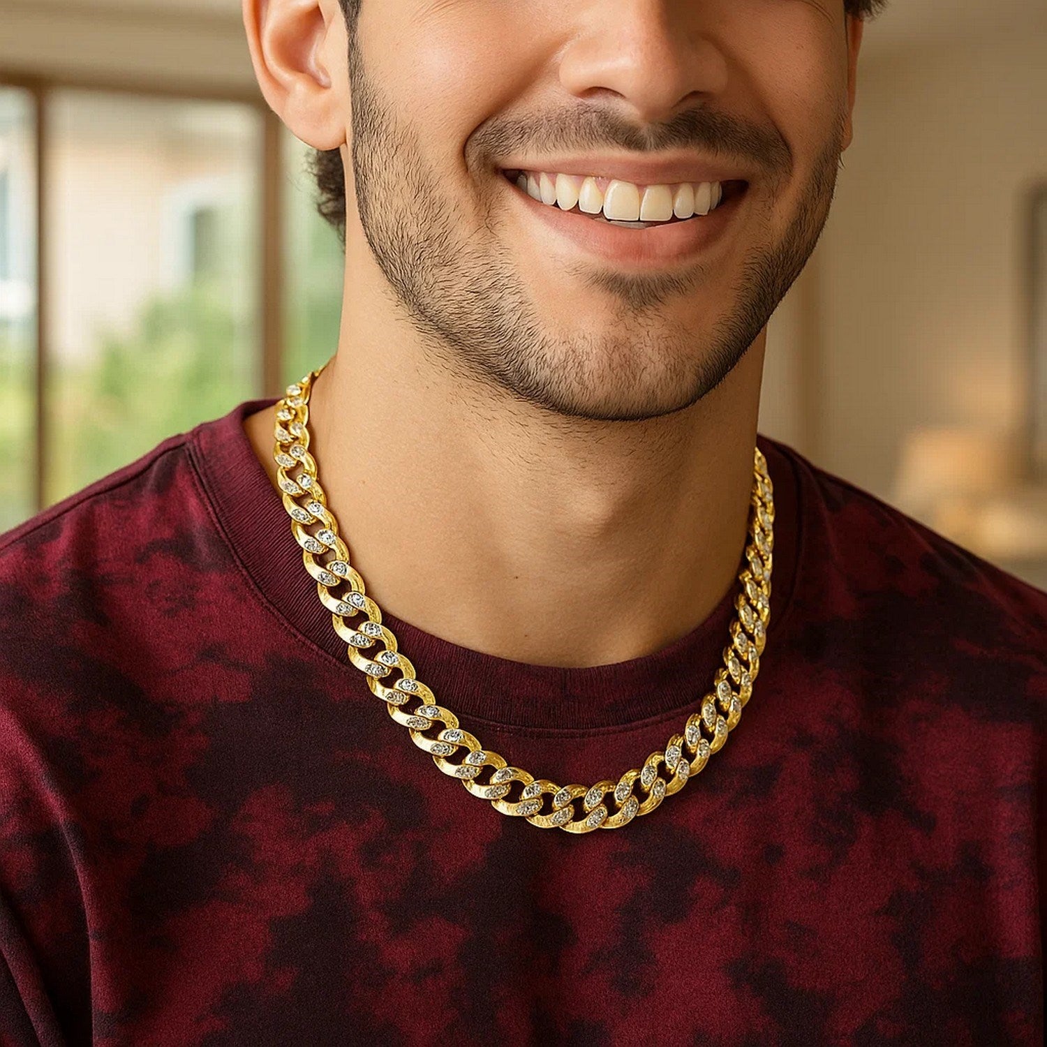 10 mm 14k Two Tone Gold Pave Curb Chain