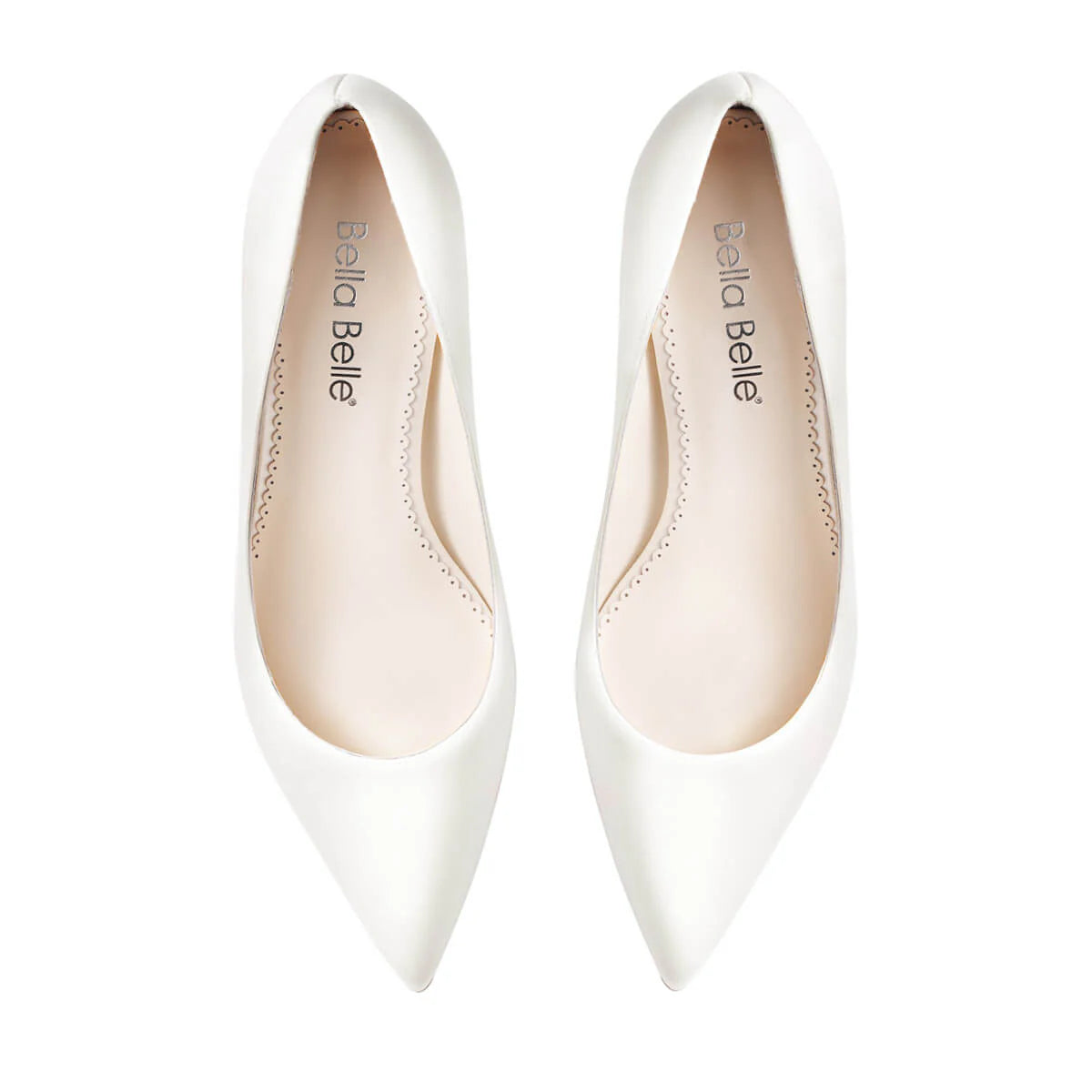 The Diana by Bella Belle is for the bride who understands that true elegance needs nothing added. A clean ivory silk upper, a pointed toe, and a refined 3-inch heel — nothing more, nothing less. Every detail is considered in its simplicity, and the result is a shoe that complements every gown without competing with it.