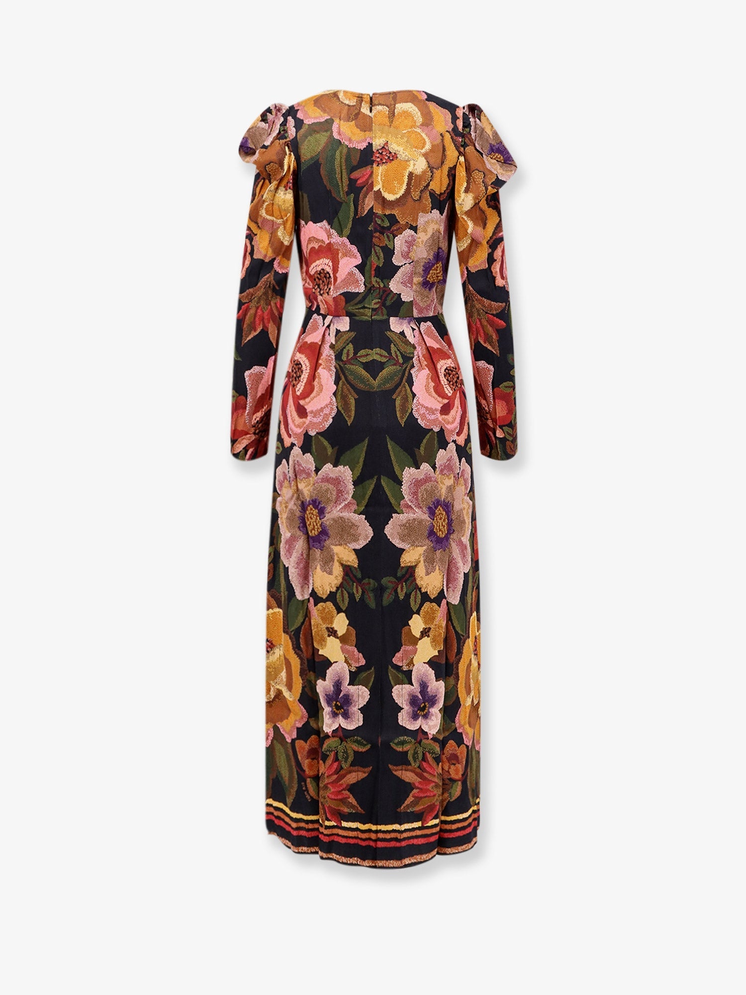 Farm Rio Viscose Long Dress With Chenille Flowers Print