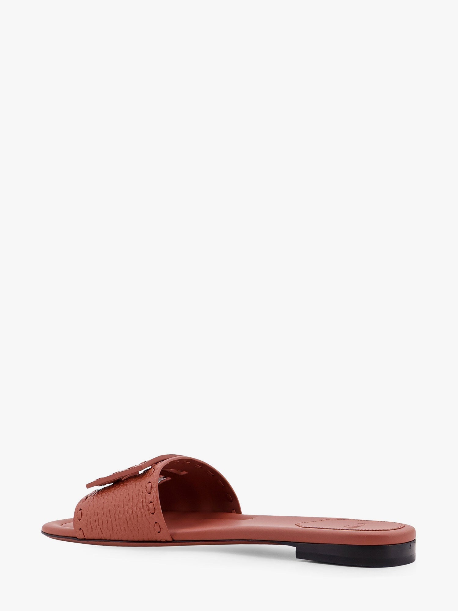 Fendi Baguette Leather Slides With Macro Selleria Topstitches