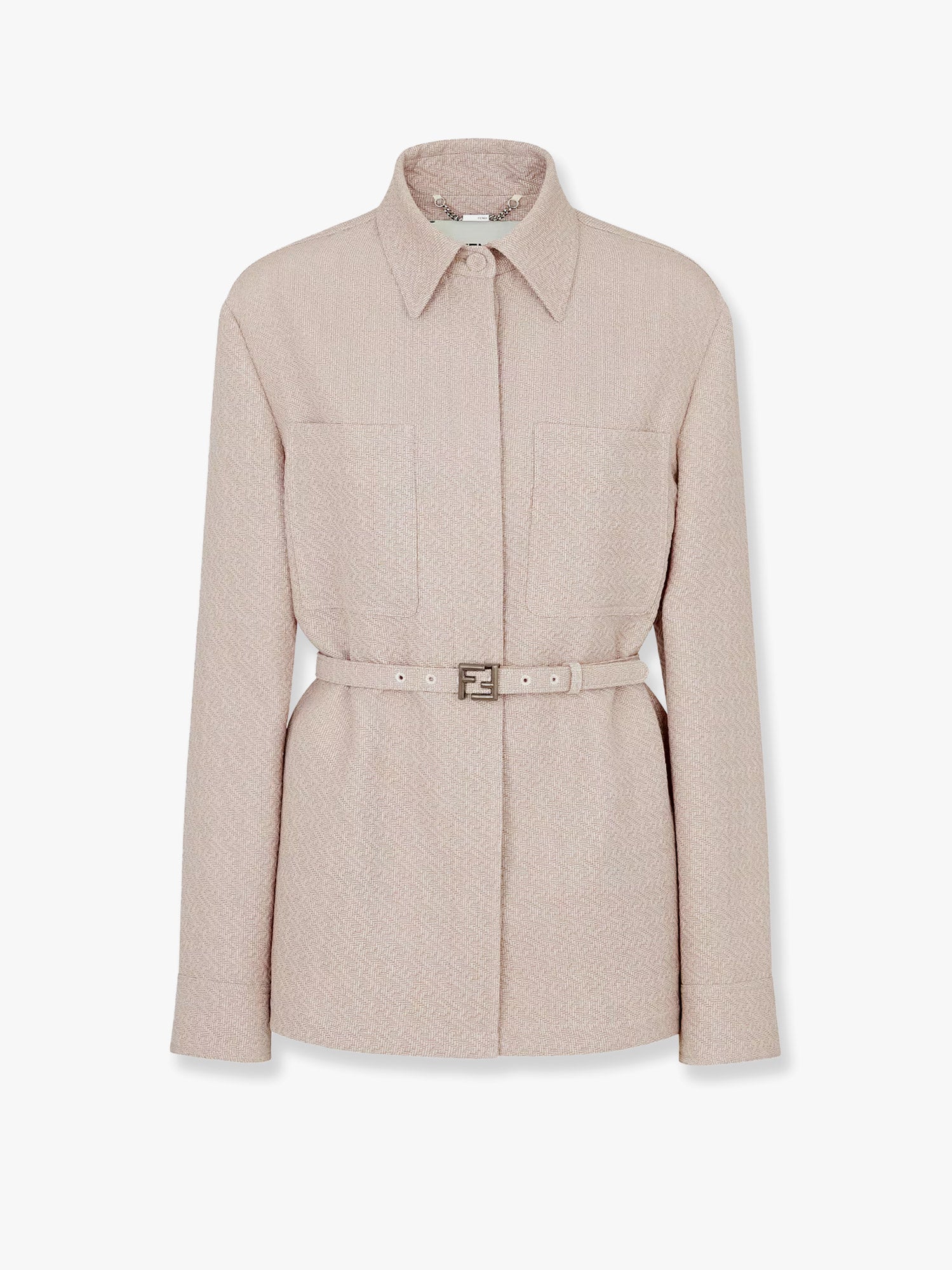 SKU: FJ7561AQ3R_F1SA0 - Hidden closure with covered buttons pointed collar and applied pockets on the front belt with ff metal buckle made in italy 88% virgin wool 12% cash