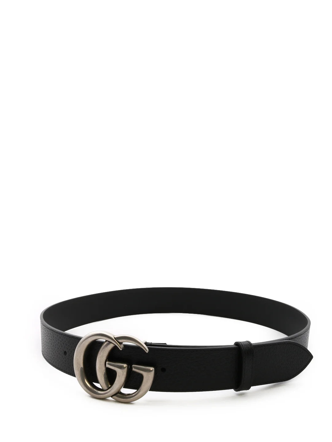 This belt fits true to size—simply select your usual size. It features the signature Double G buckle in silver-tone hardware, a pointed tip, 4cm width, and pre-drilled holes for an adjustable fit. Made from calf leather.
