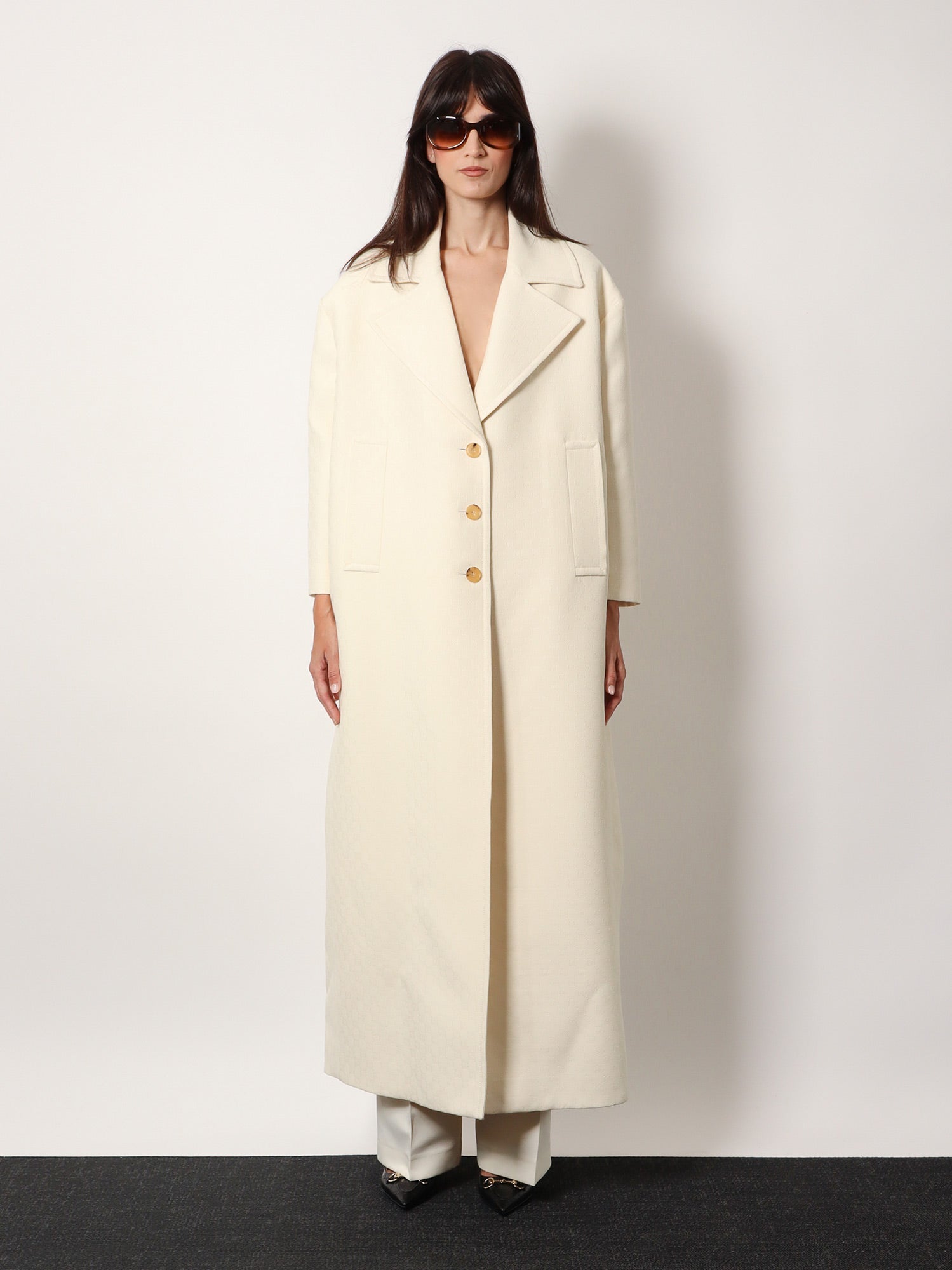 Gucci Wool And Silk Crepe Coat With All-Over Gg Motif