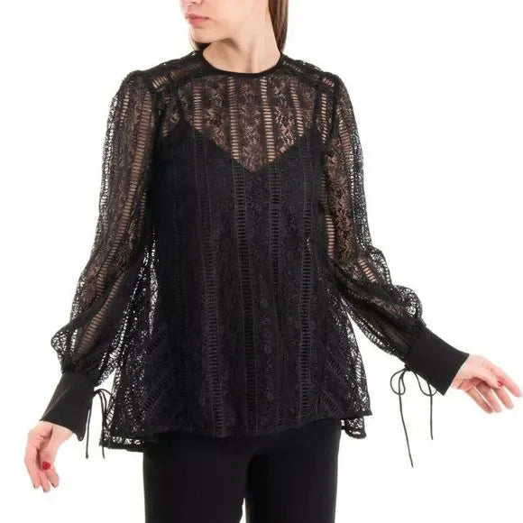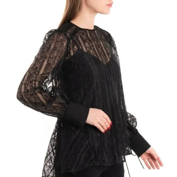 Rebecca Vallance Black Lace Long-Sleeve Top