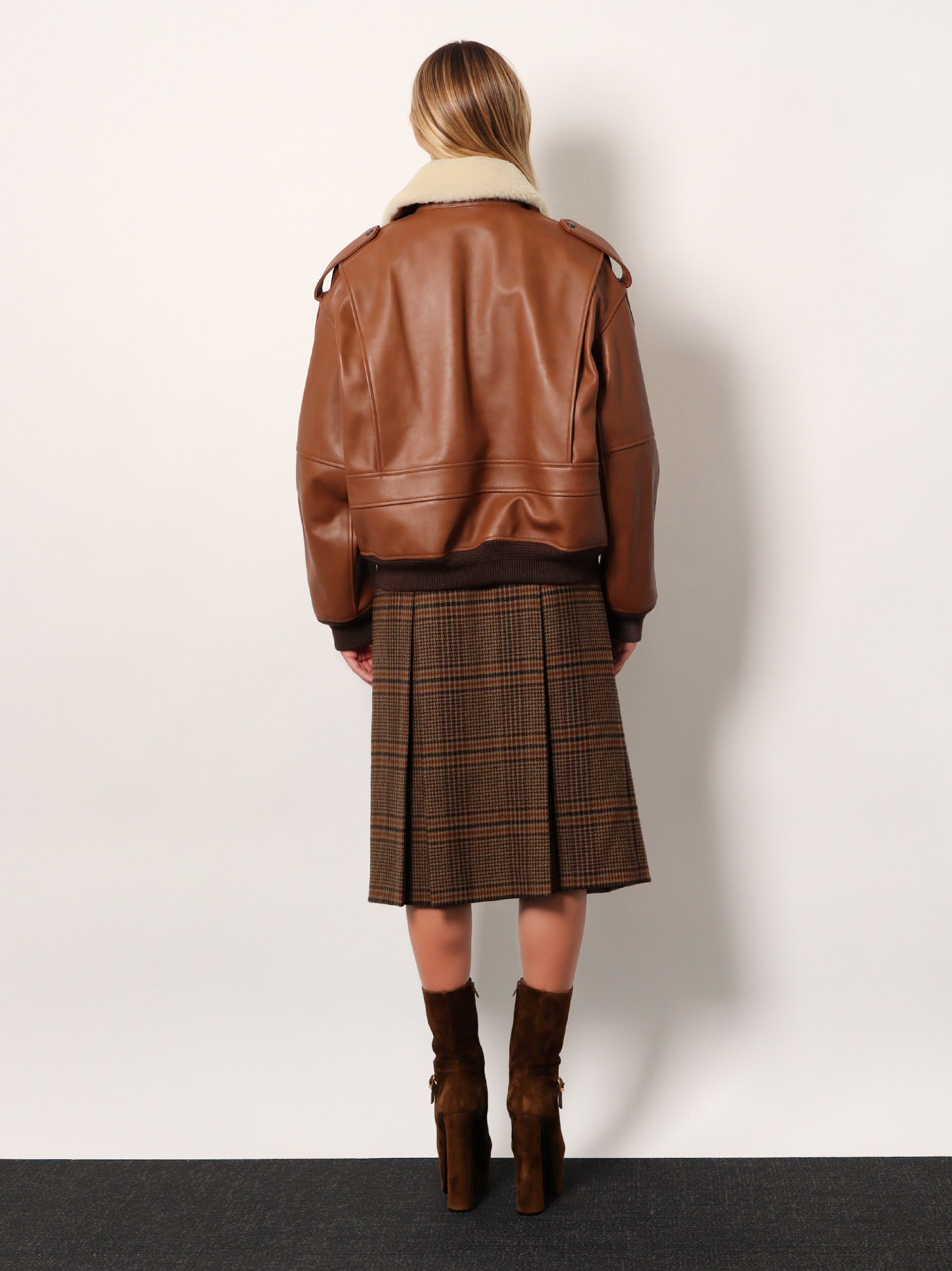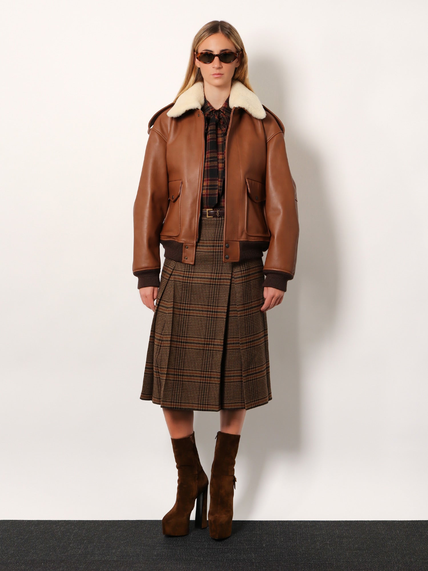 Saint Laurent Leather Bomber Jacket With Shearling Collar