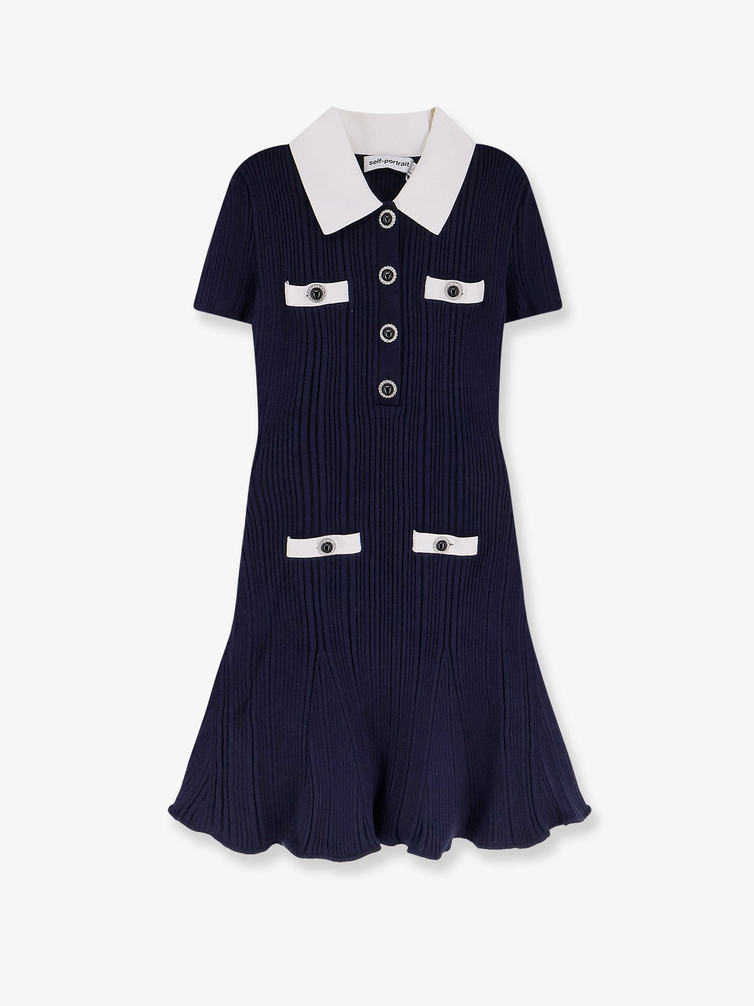 Self-Portrait Navy Ribbed Knit Mini Dress
