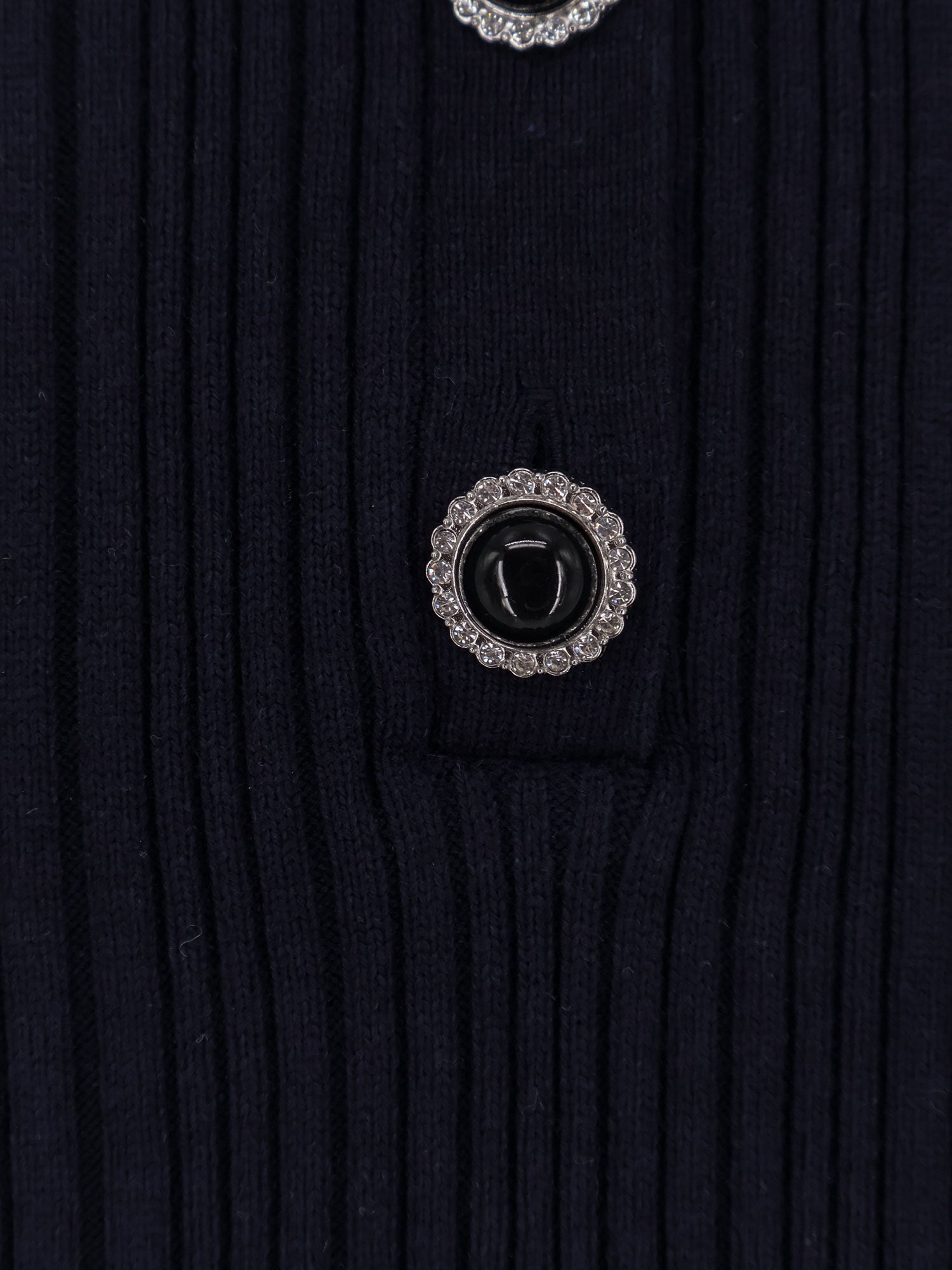 A playful yet polished silhouette, this Self-Portrait ribbed mini dress blends modern femininity with the brand’s signature London charm. Featuring a maxi contrast collar, jewel button closure, and a softly flared shape, it offers a flattering knit structure that transitions effortlessly from daytime chic to evening refinement. Crafted from a luxurious blend of wool, cashmere, and technical fibers, it delivers comfort, texture, and timeless elegance in one elevated piece.