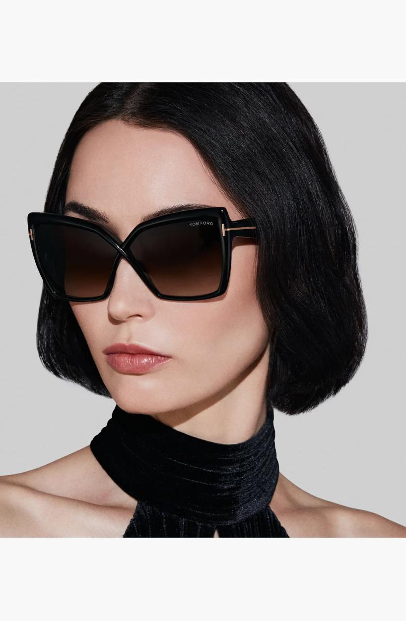 Tom Ford Fiore 63mm Oversize Gradient Butterfly Sunglasses feature a distinctive crisscross bridge that enhances their design. These Italian-crafted butterfly frames come with gradient lenses and display the iconic T-inlays on the temples.