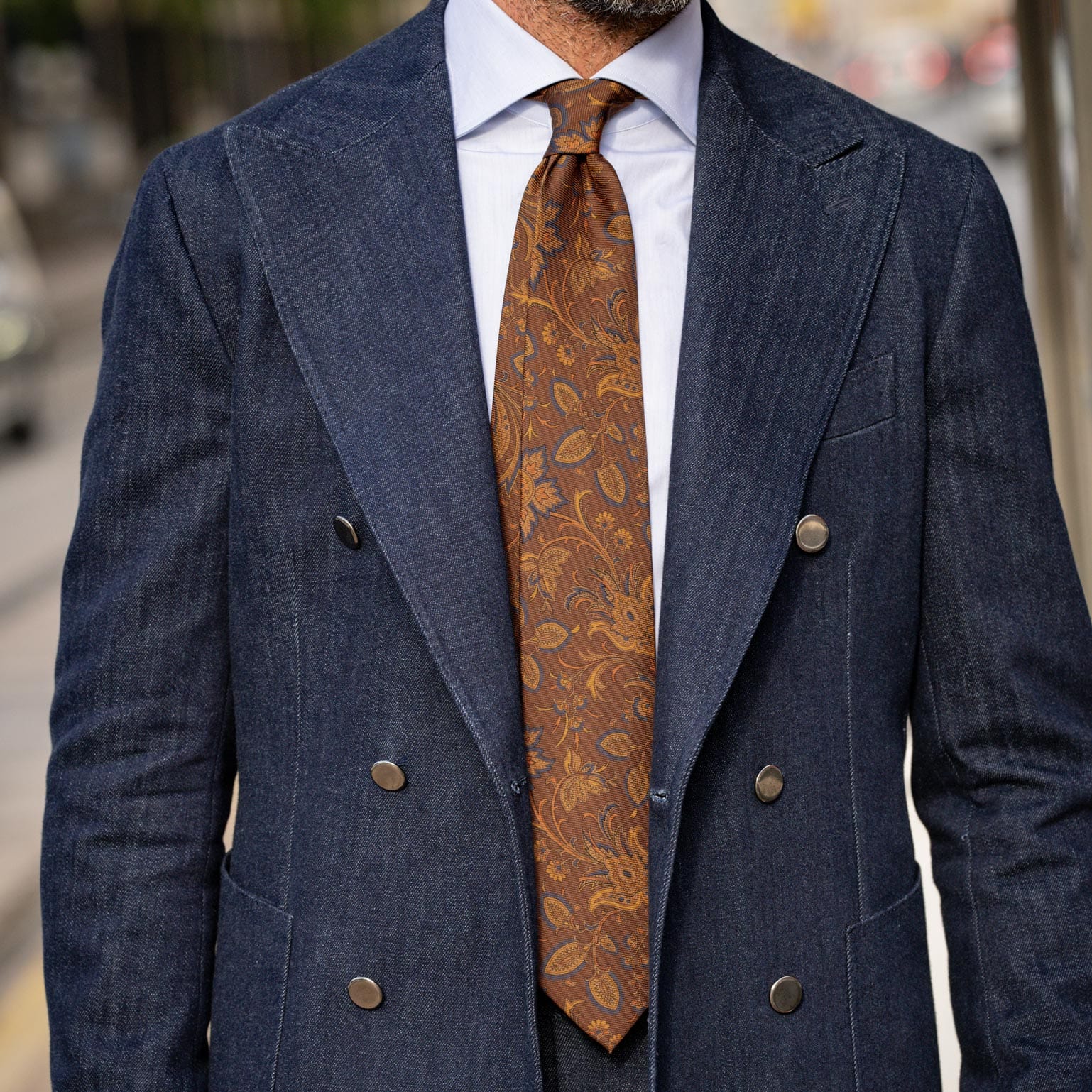 Cette cravate, avec son délicat motif floral, est un clin d'œil à ces jardins luxuriants et inoubliables. Un petit morceau de beauté naturelle à porter partout.