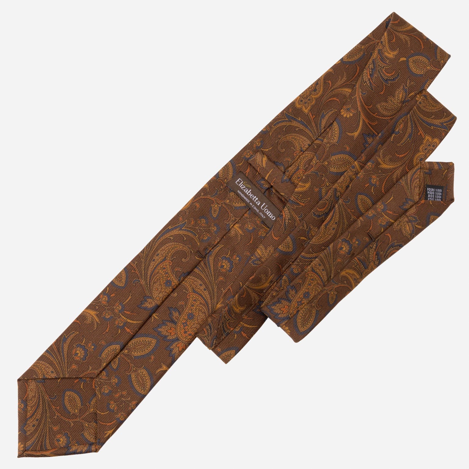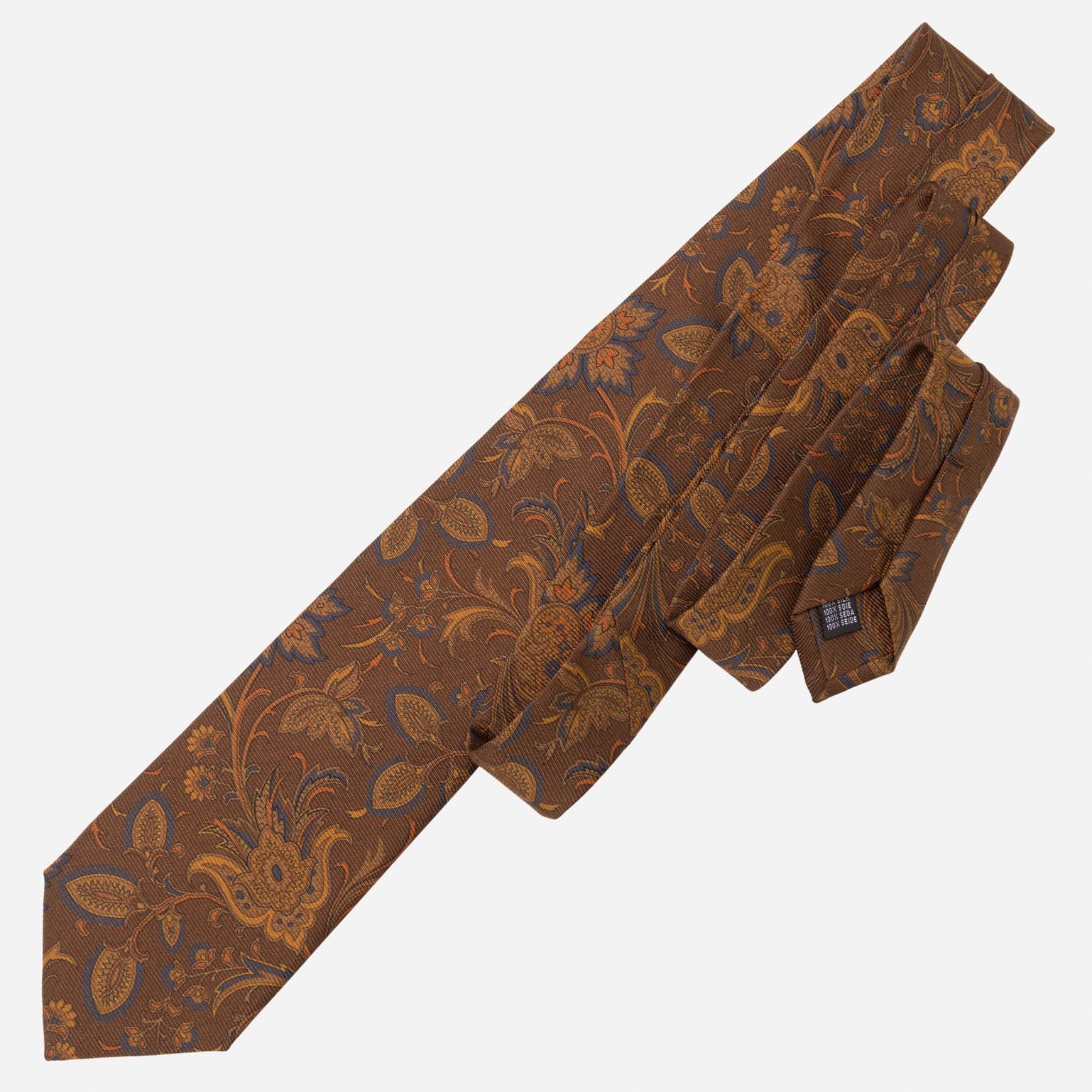 Borromeo - Cravate en soie imprimée Garance - Marron pécan
