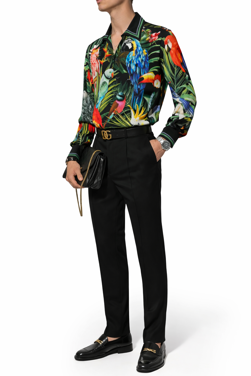 Dolce & Gabbana Tropical Birds Print Silk Men’s Shirt