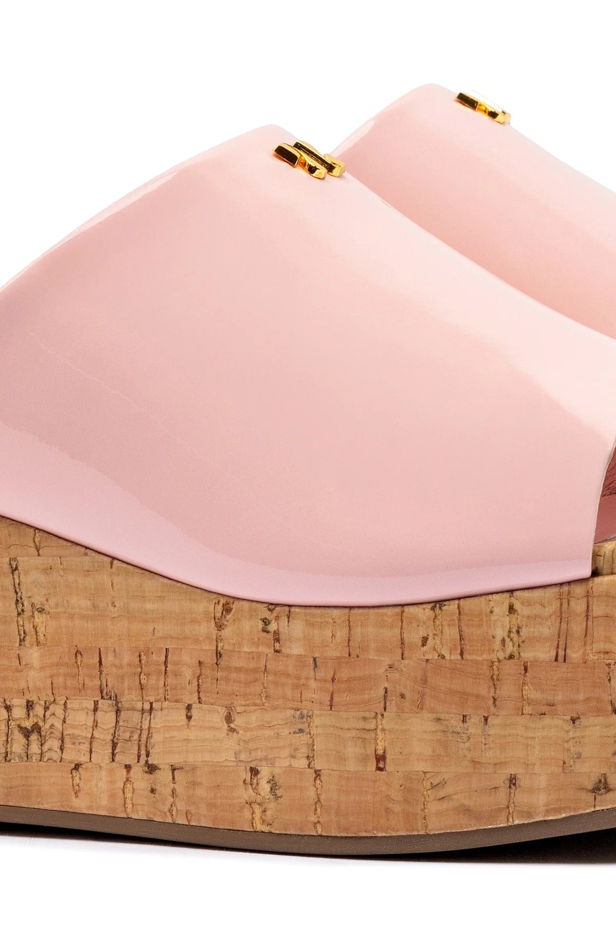 • Soft patent leather and cork wedge