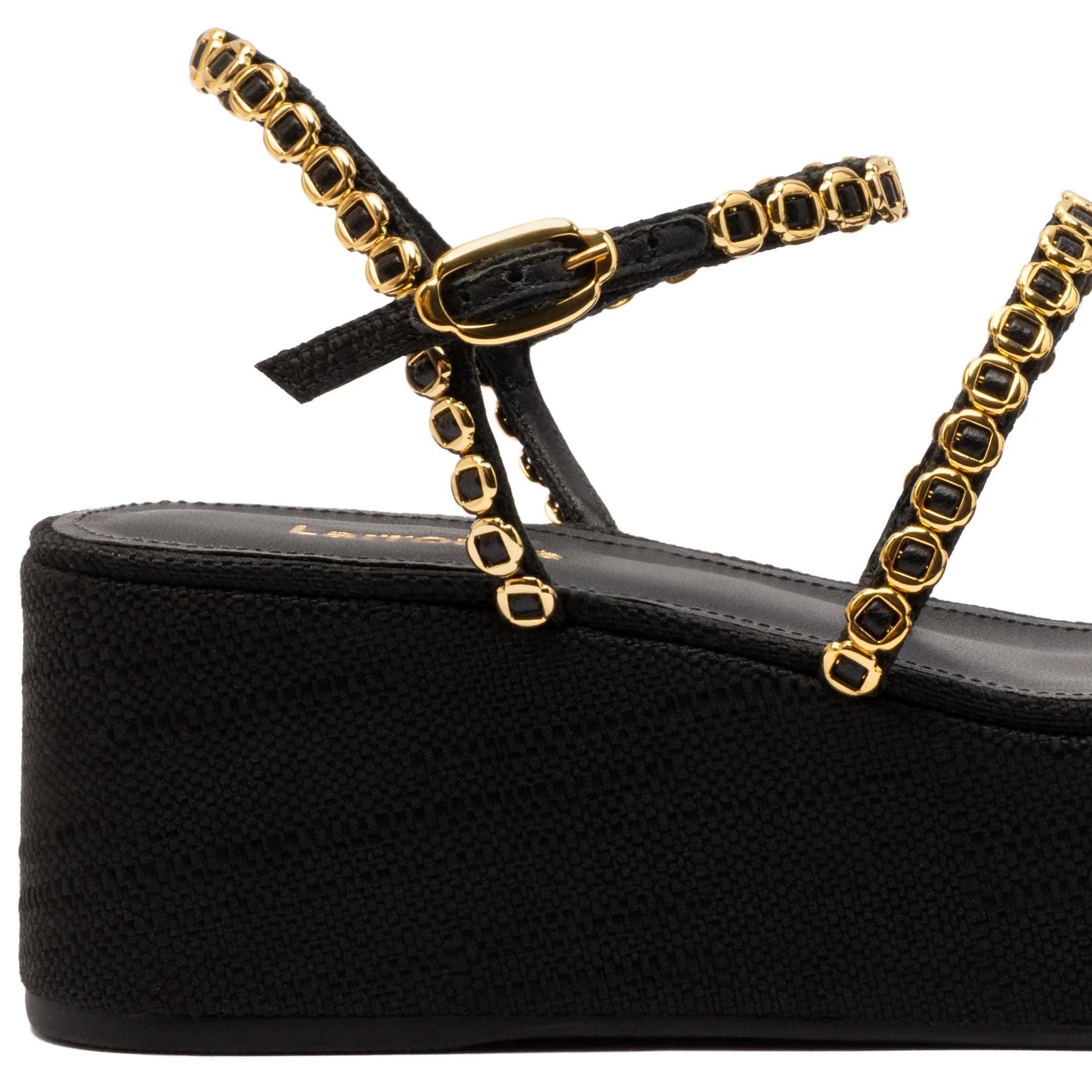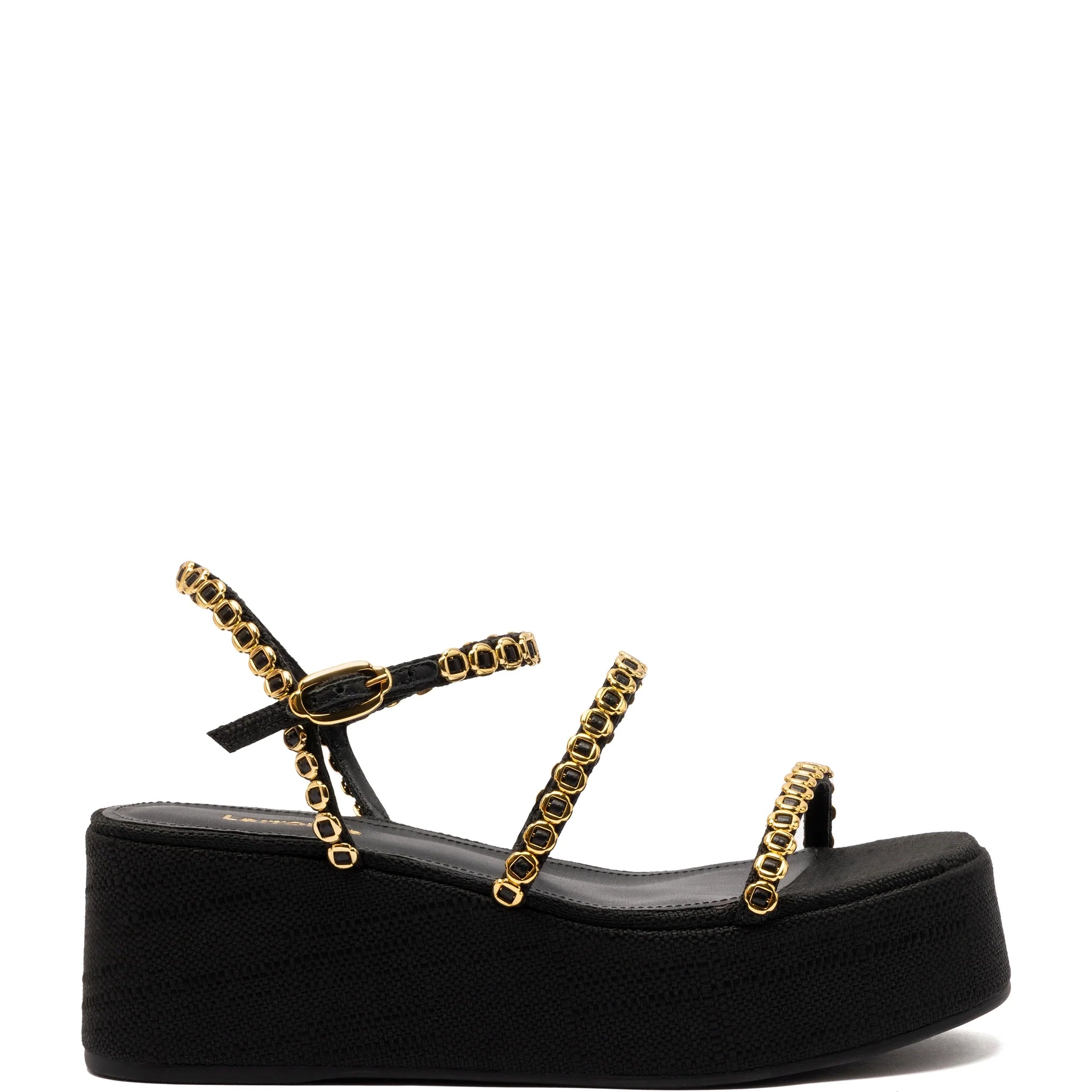 Larroude Gio Milanina Flatform Sandal In Black Raffia