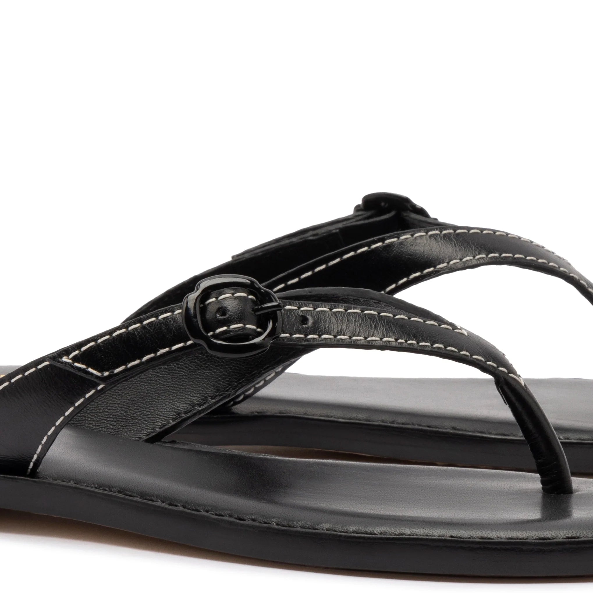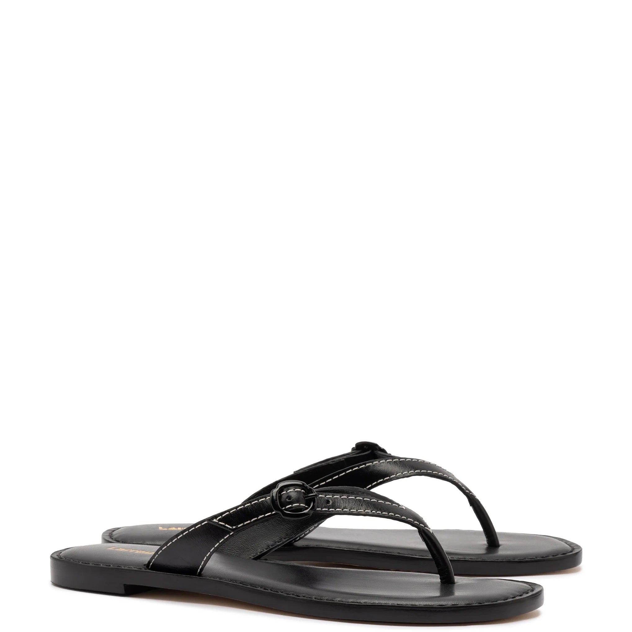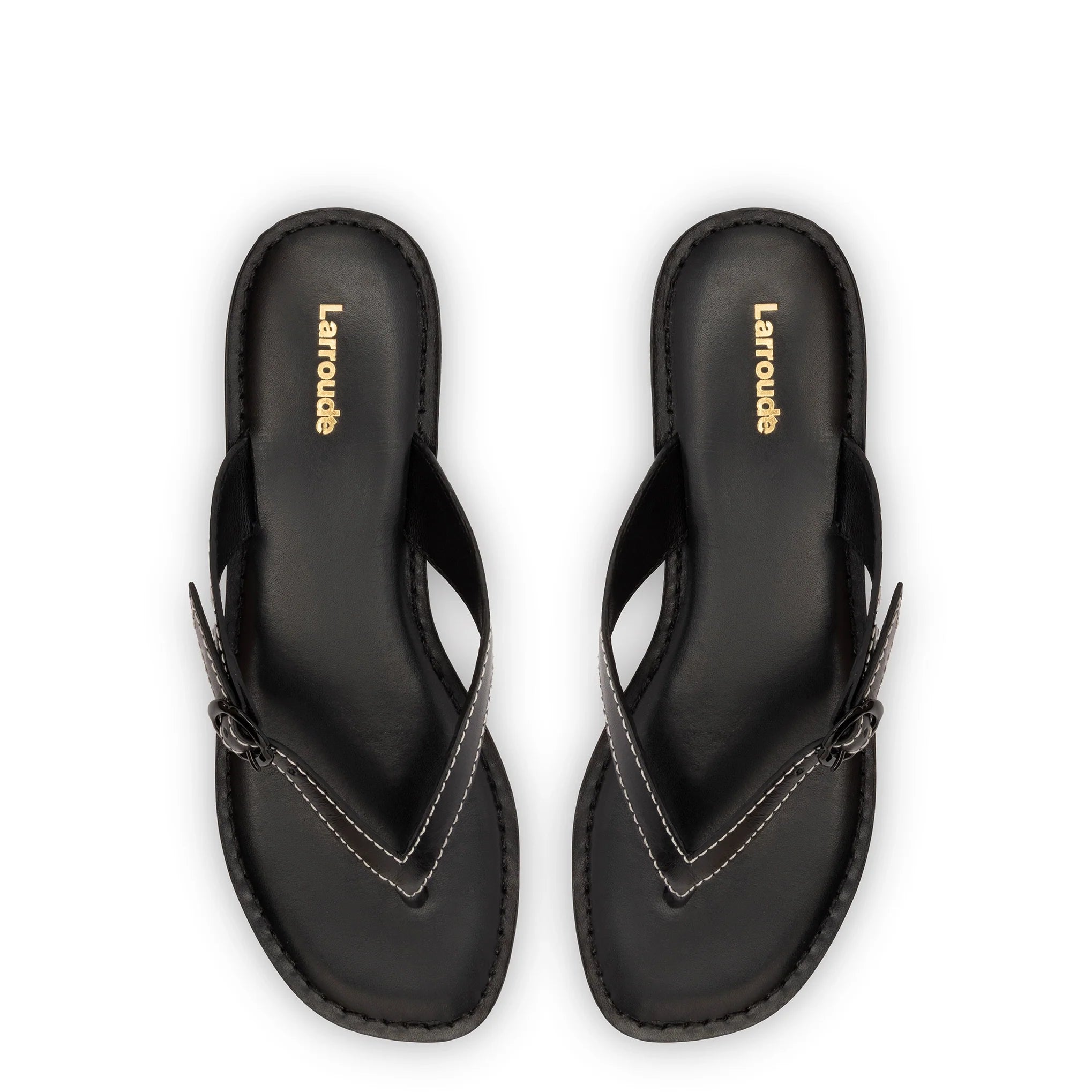As sleek and chic as it gets, our new Mary Kate Flat Sandal is named for the boho icon. Barely-there with a hint of high-fashion appeal, this timeless new silhouette in black leather is the one you'll reach for again and again. By Larroude