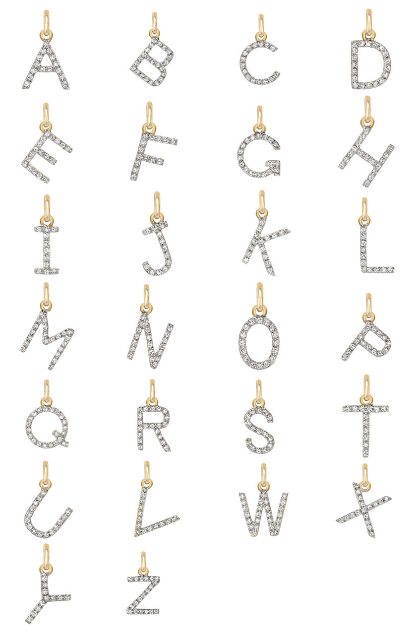 This diamond initial pendant features a block font design and is available in your preferred gold color. The pendant is sold separately from the chain and can be worn alone or combined with other charms, representing your own initial or those of loved ones.
