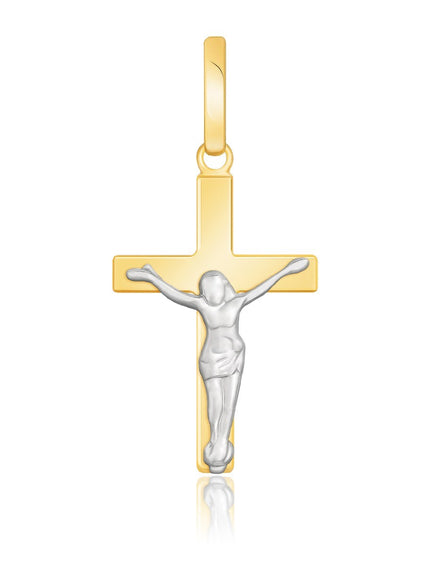 Exuding, steadfast spirituality this crucifix pendant is as beautiful as it is symbolic. Crafted in fine 14k white and yellow gold and comes with a slim polished bail.
