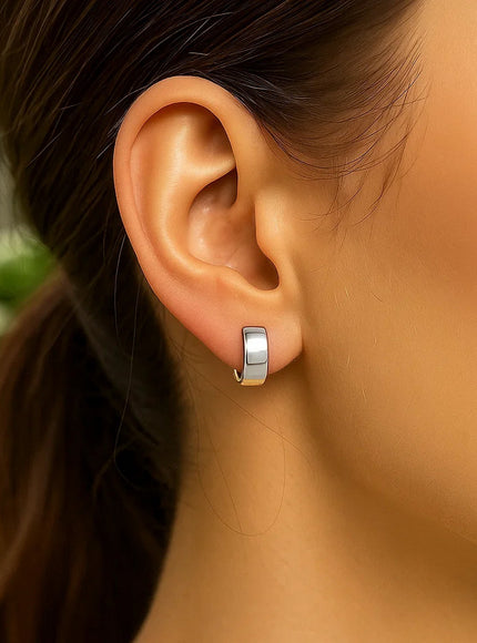 Featuring two sides in dazzling 14k yellow and white tone gold, these reversible snuggable style hoop earrings are positively exquisite. These are secured with hinged snap backs.