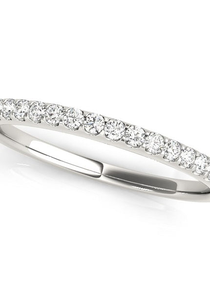 This darling wedding ring showcases sixteen brilliant diamonds in classic scallop style setting. Crafted in fine 14k white gold.