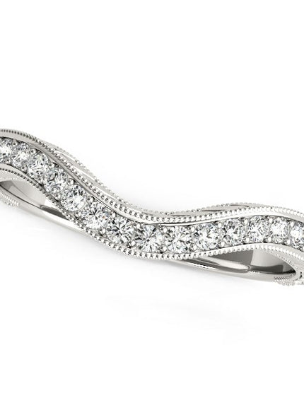 14k White Gold Milgrained Baroque Curved Diamond Wedding Ring (1/6 cttw)