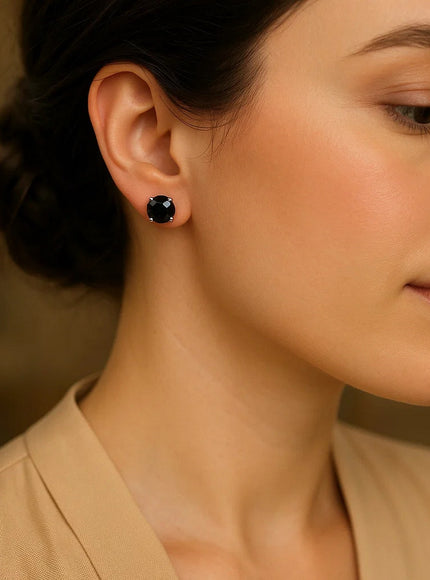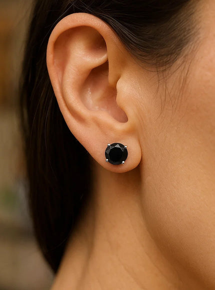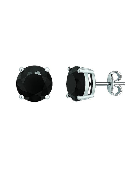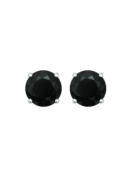 14k White Gold Stud Earrings with Black 6mm Faceted Cubic Zirconia