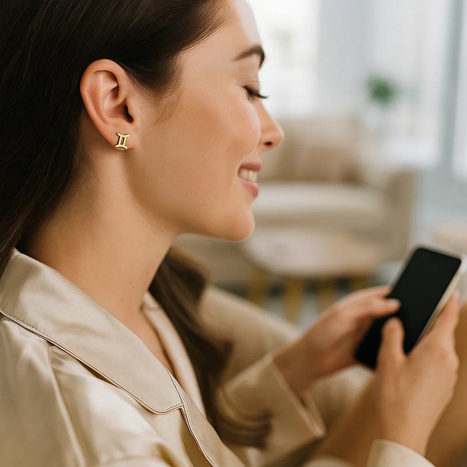 This set of Gemini Stud earrings is beautifully crafted in 14k yellow gold with a high polish finish & secures with universal backs. These beautiful studs are hand crafted & such a beautiful piece for that gemini in your life. Don't forget the matching necklace!