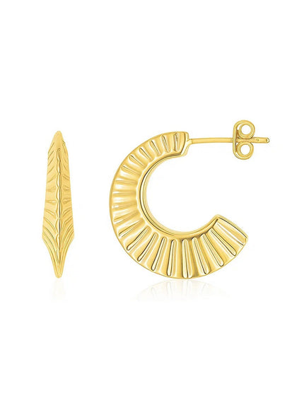14K Yellow Gold Graduated Scalloped Pointed Half Hoops