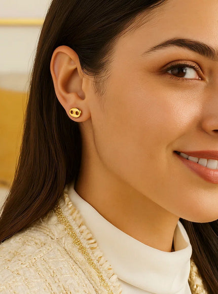 These Mariner Link Button earrings are a beautiful addition. Complete your classic look. Great for pairing alongside others or wearing independently. Crafted in 14k yellow gold with a high polish finish & a push back closure.