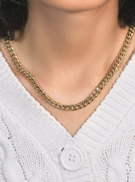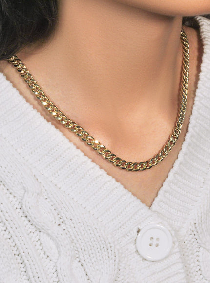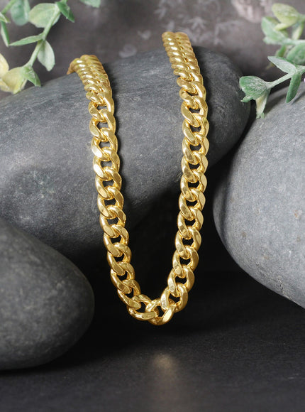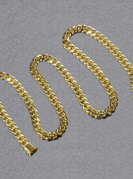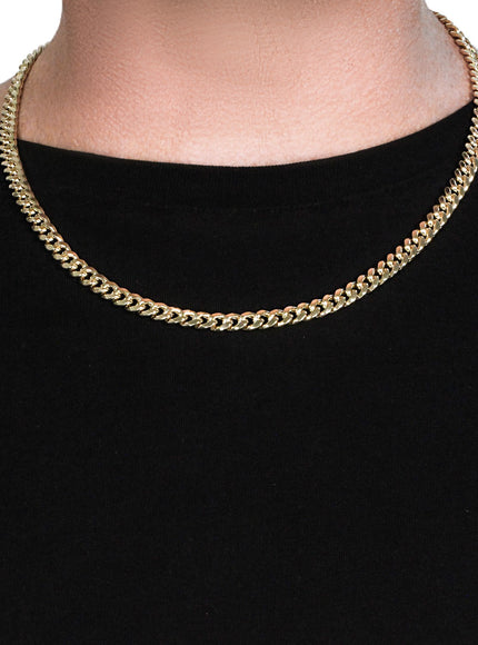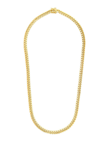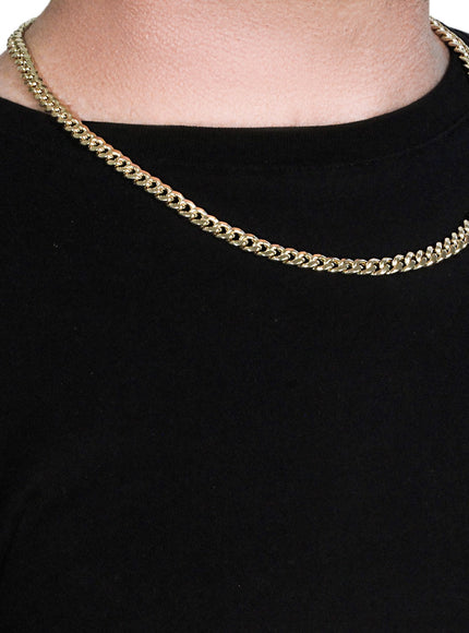 This semi solid Miami cuban chain comes in 14k yellow gold and has a width of 6.9 millimeters.