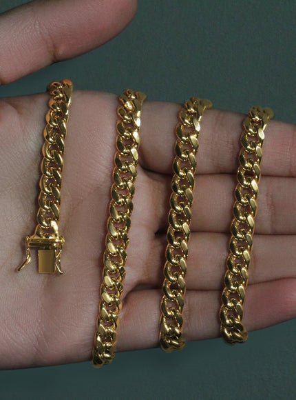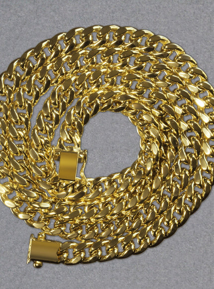 6.9mm 14k Yellow Gold Semi Solid Miami Cuban Chain