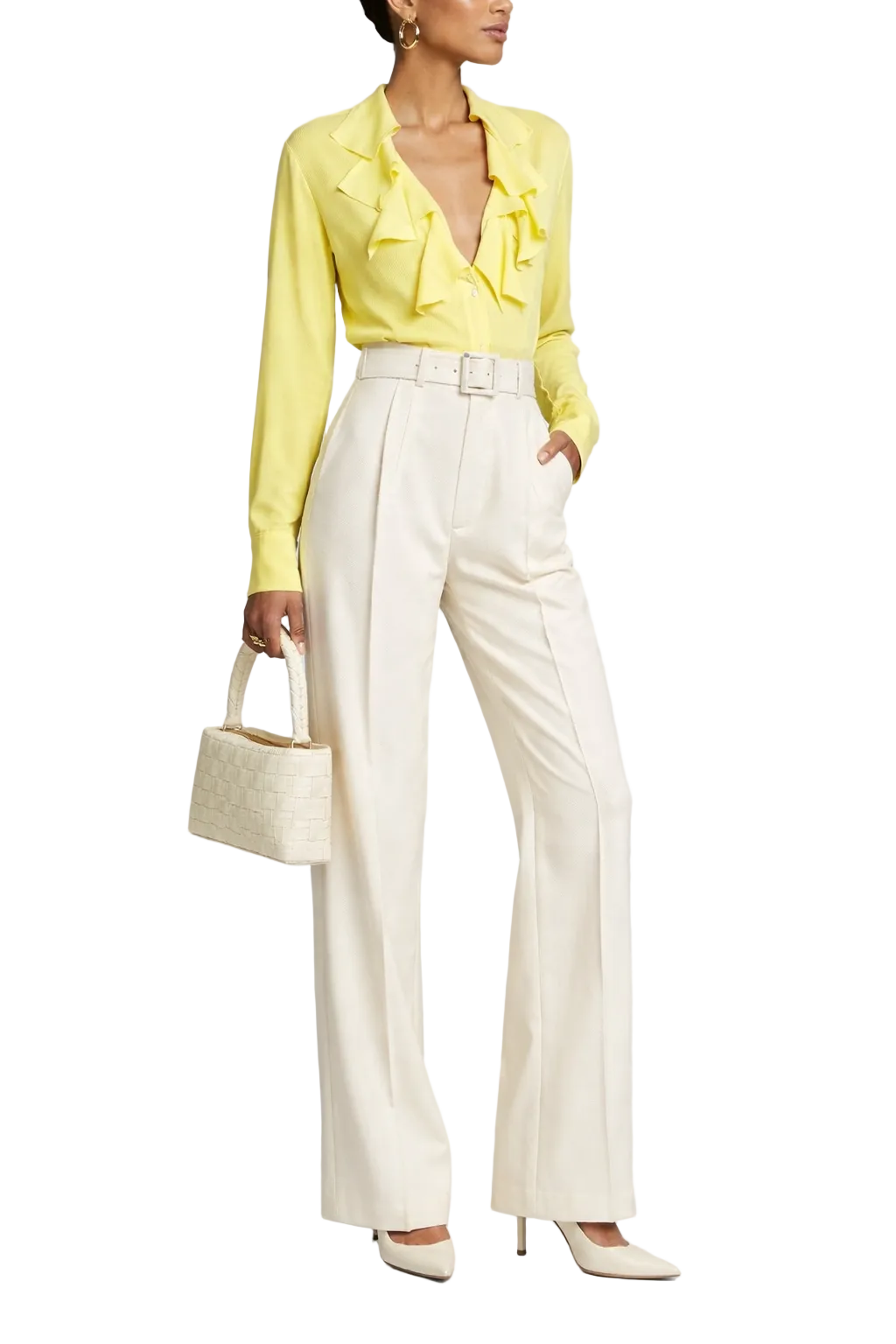 • V-neck with ruffle trim