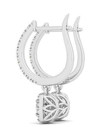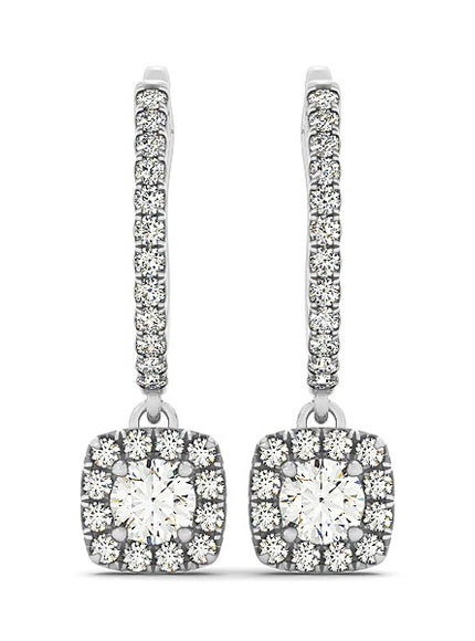 Cushion Shape Halo Style Diamond Drop Earrings in 14k White Gold (1/2 cttw)