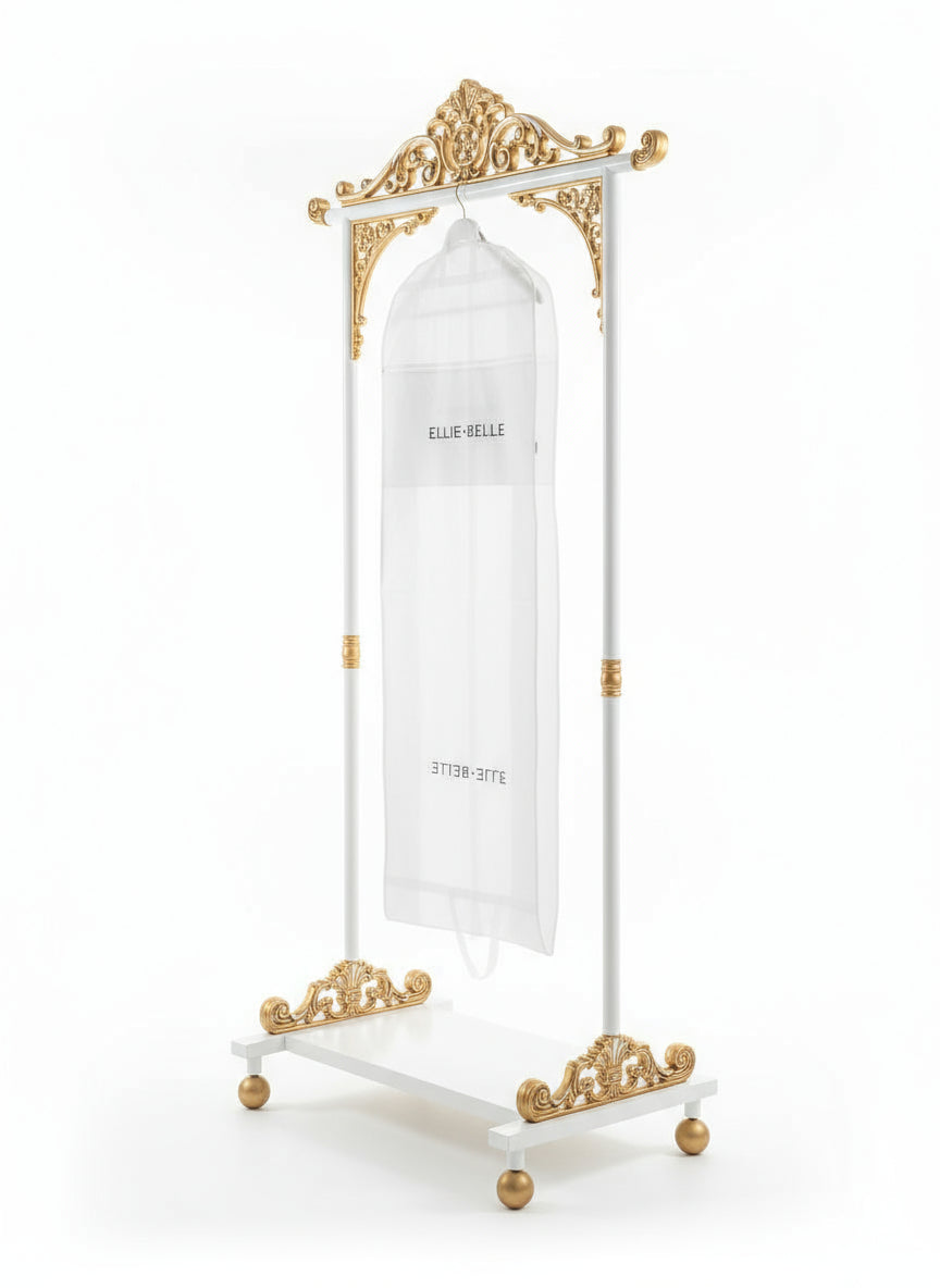 Perfect for bridal gowns, couture dresses, and luxury tailoring. Ideal for travel, fittings, and wardrobe preservation. This is the garment bag that carries your Ellie Belle experience from boutique to event in style.