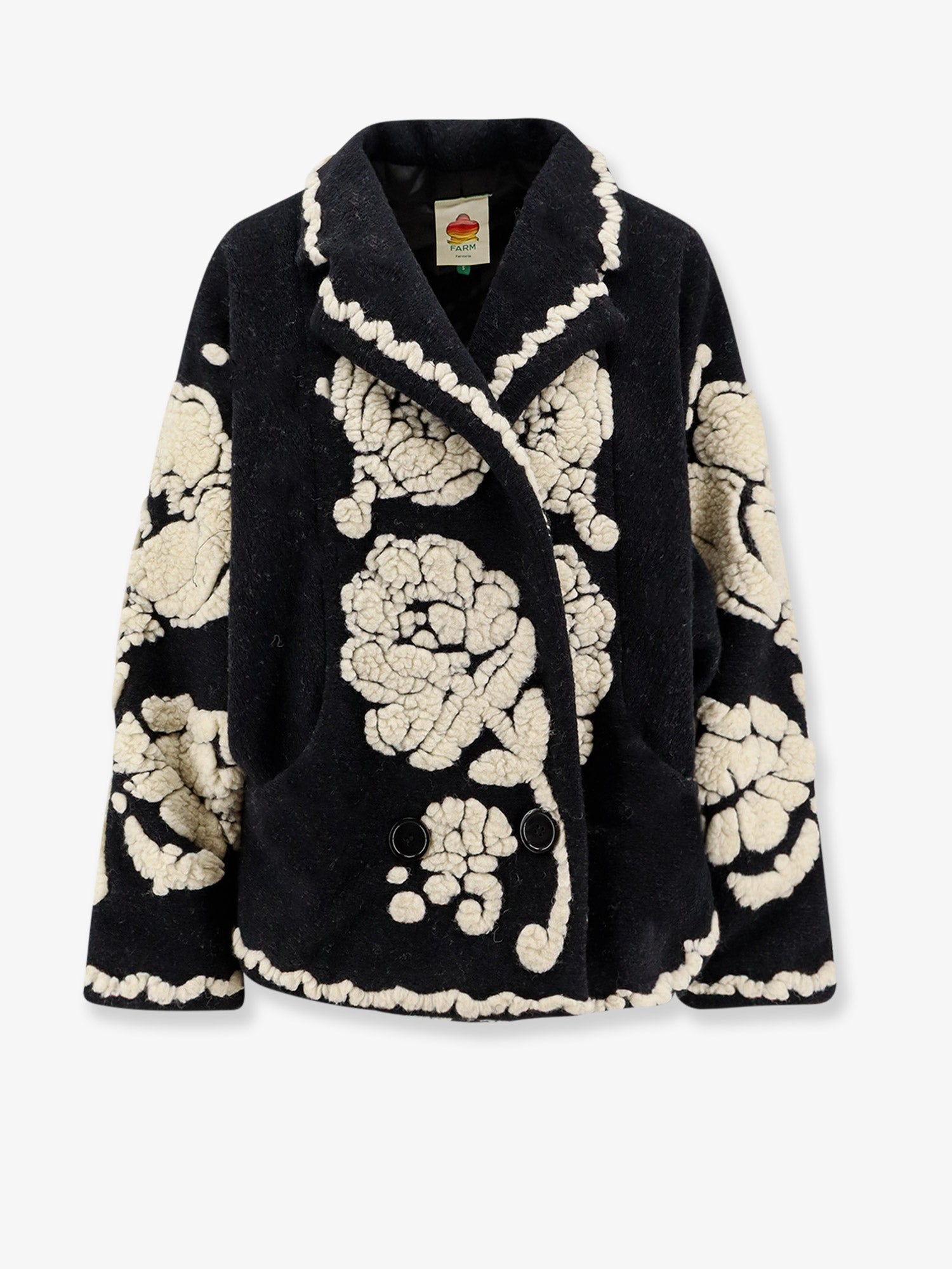 Farm Rio Wool Blend Coat With Floral Arabesque Motif