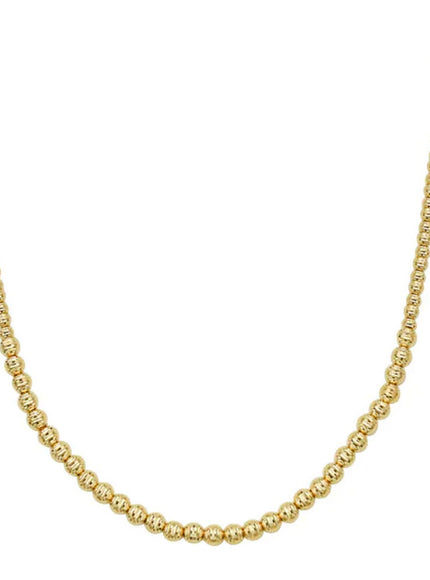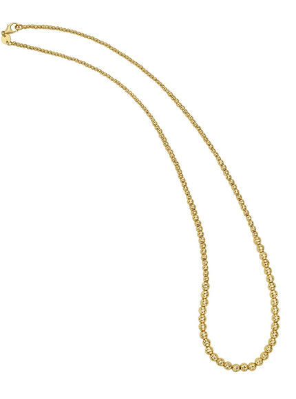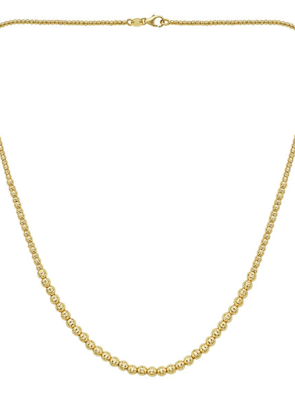 Crafted with diamond-cut, textured 14k yellow gold beads, this graduated necklace catches the light with every movement. A striking blend of artistry and shine, this piece is a statement of understated luxury and a radiant expression of elegance and refined craftsmanship. Secured with a lobster clasp closure available in an 18 inches length.