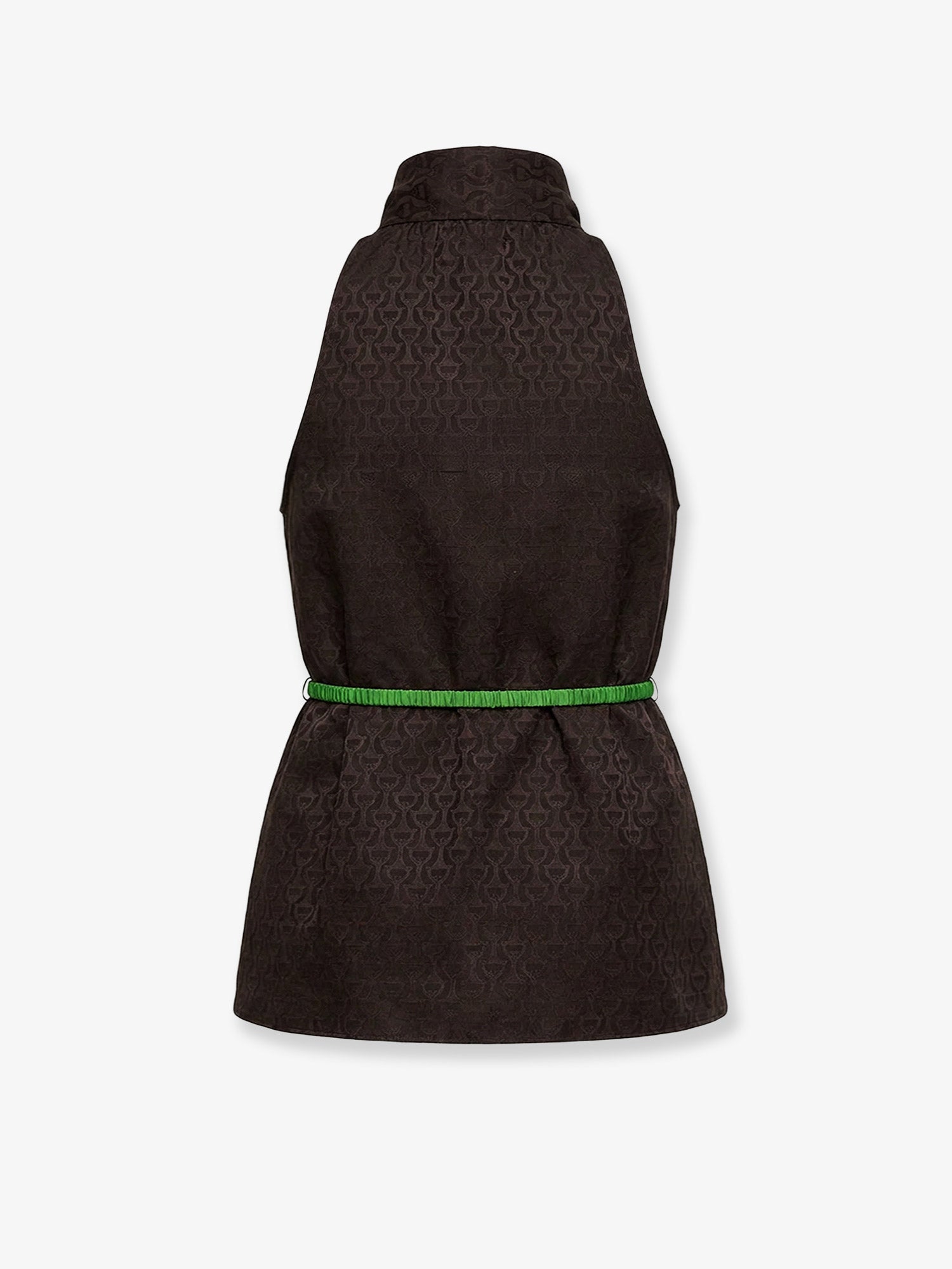 Gucci Horsebit Jacquard Silk Sleeveless Shirt