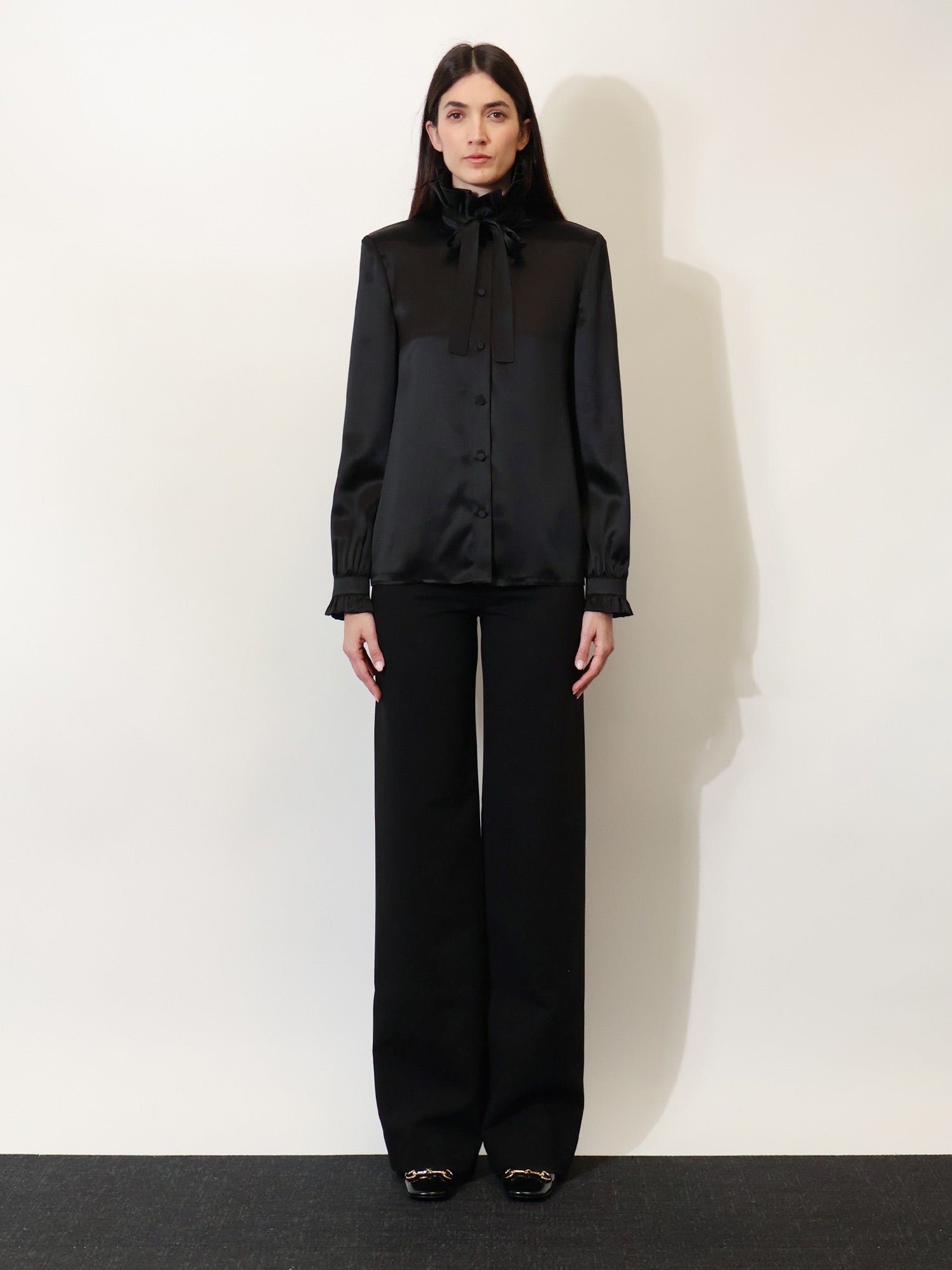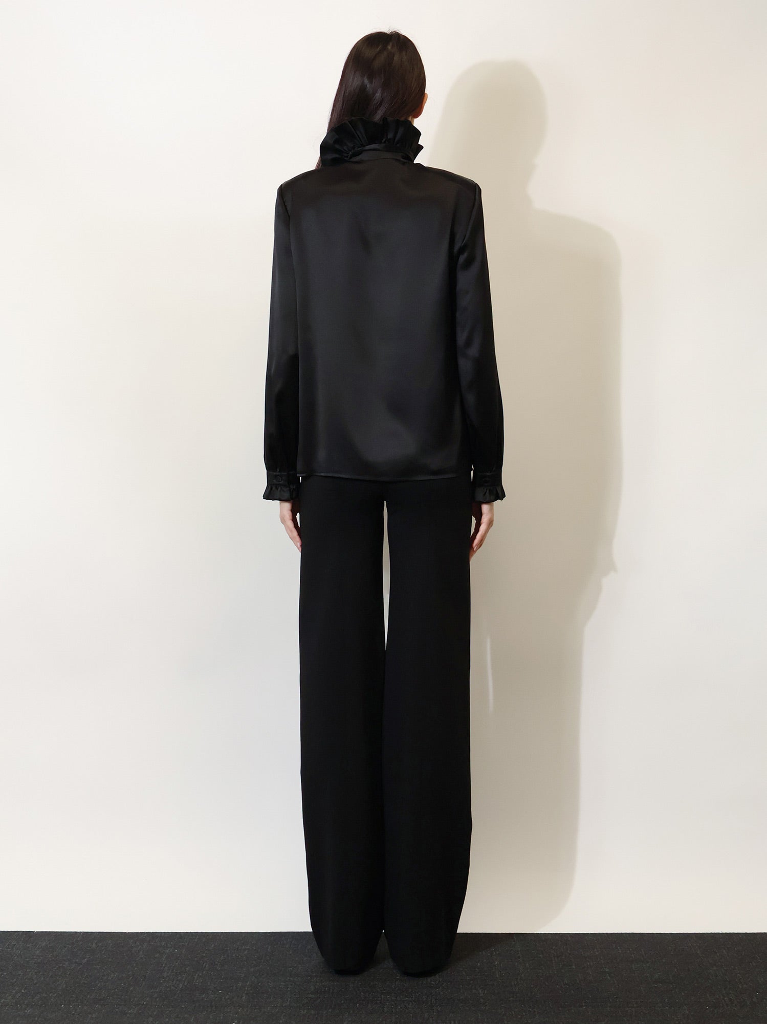 Long sleeves with cuffs, covered button and ruffle